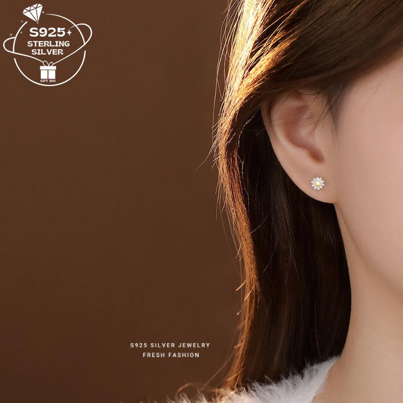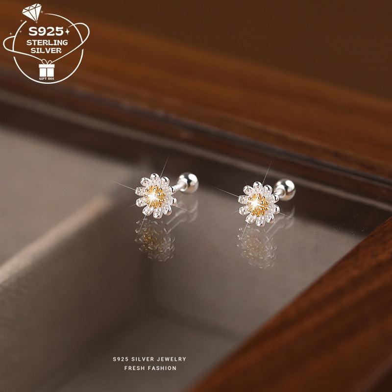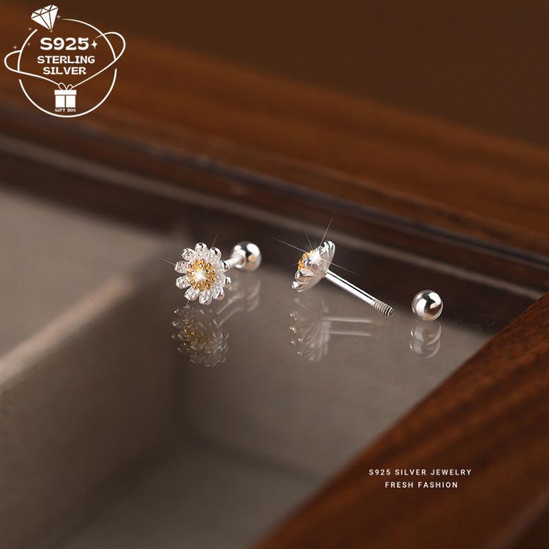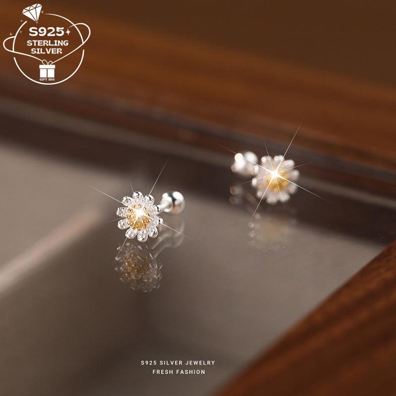 Elevate your casual attire with these trendy daisy earrings made of hypoallergenic S925 sterling silver. The secure screw backs ensure a comfortable and fashionable fit.