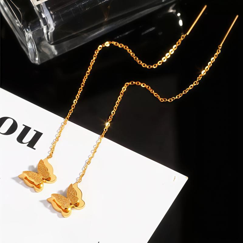 Enjoy these 18K golden plated butterfly tassel earrings that are anti-fading, comfortable, and high fashionable. Perfect for daily wear.
