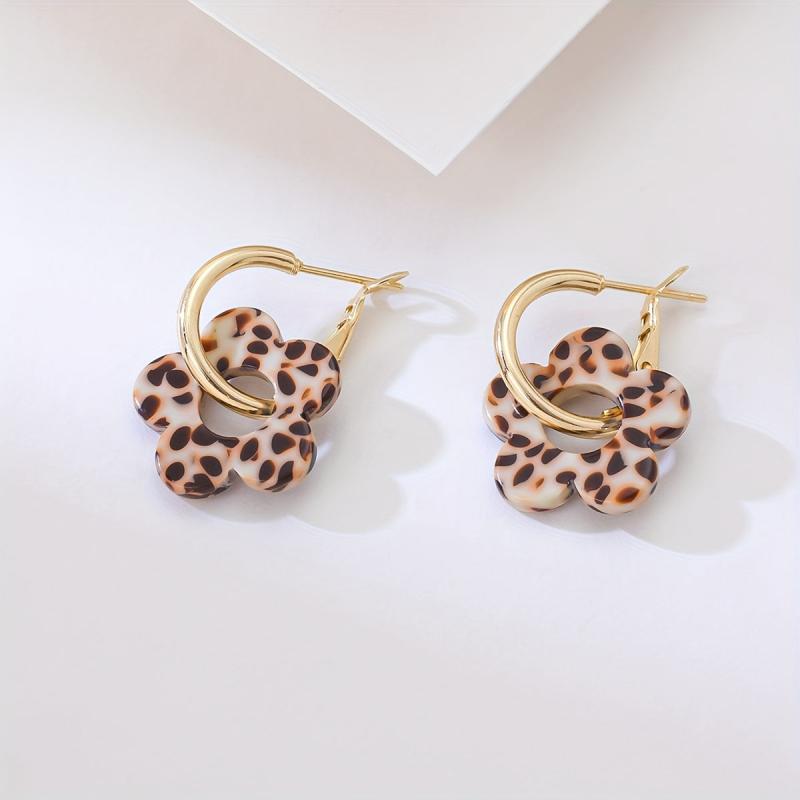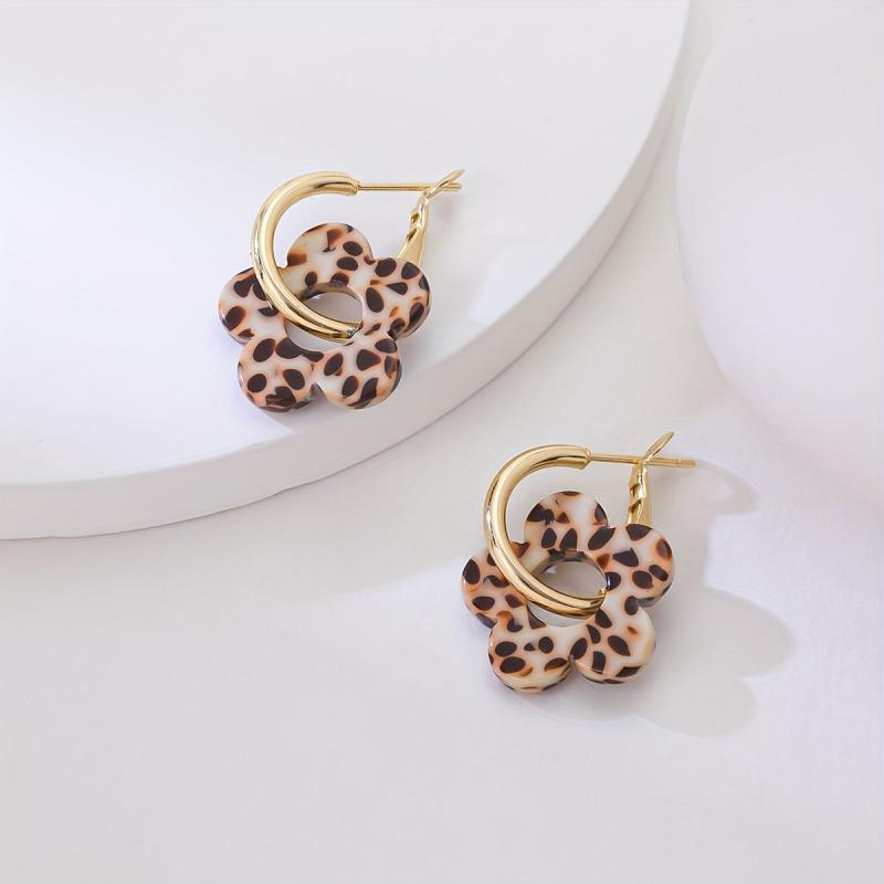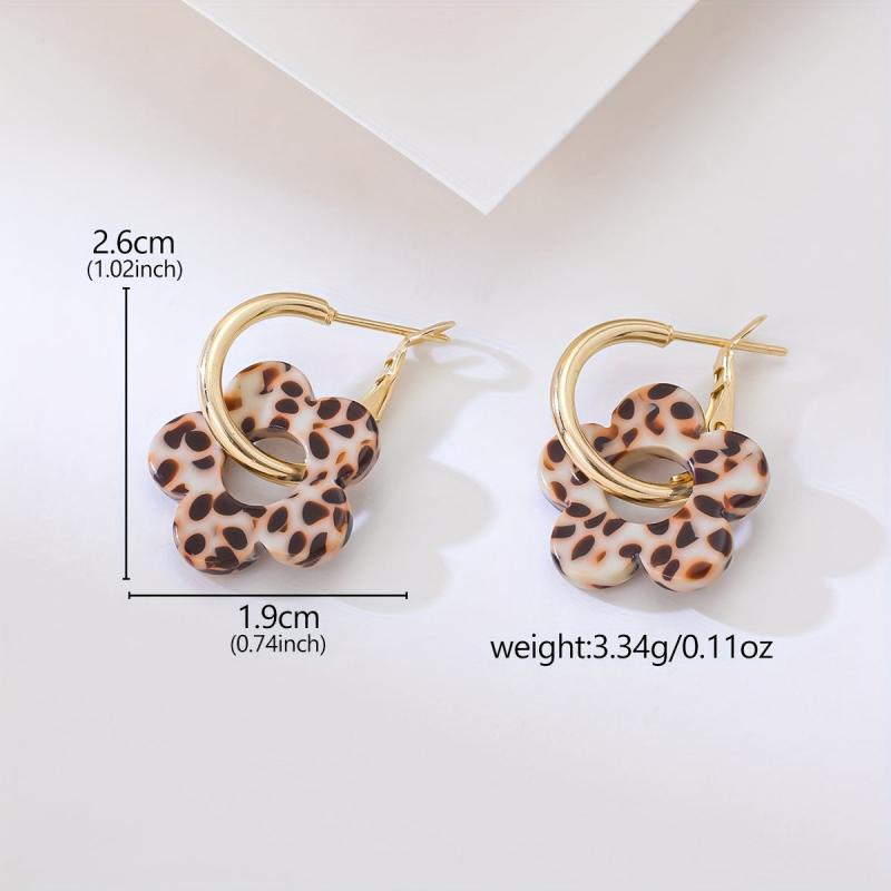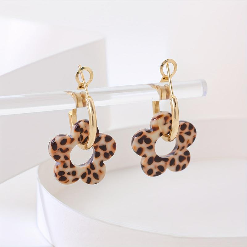 Leopard Print Acrylic Dangle Earrings Stainless Hooks Lightweight