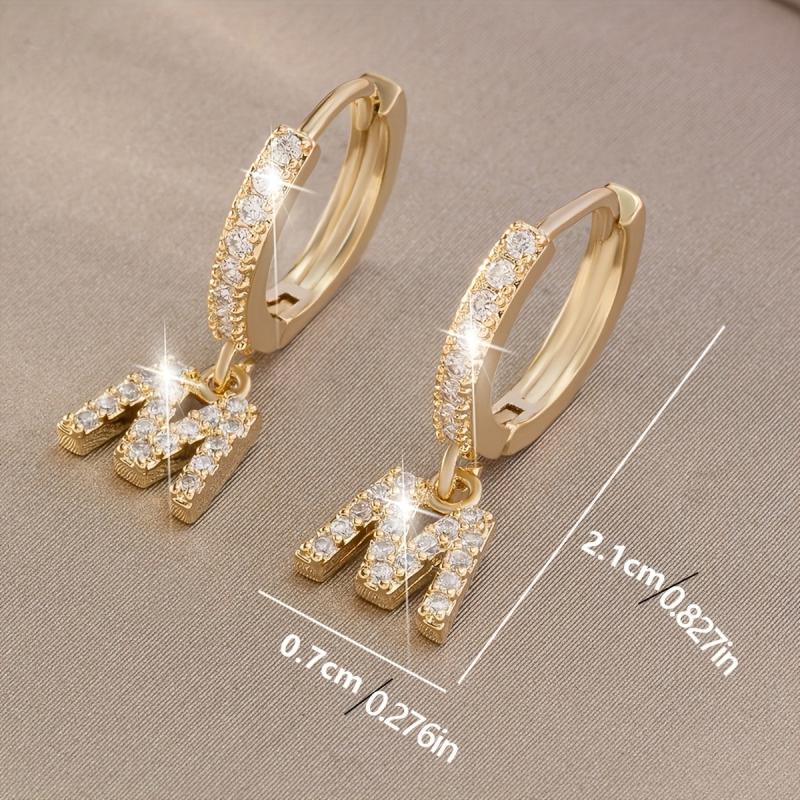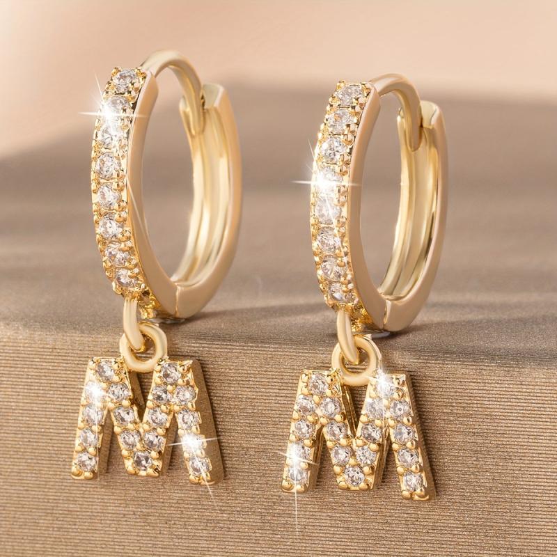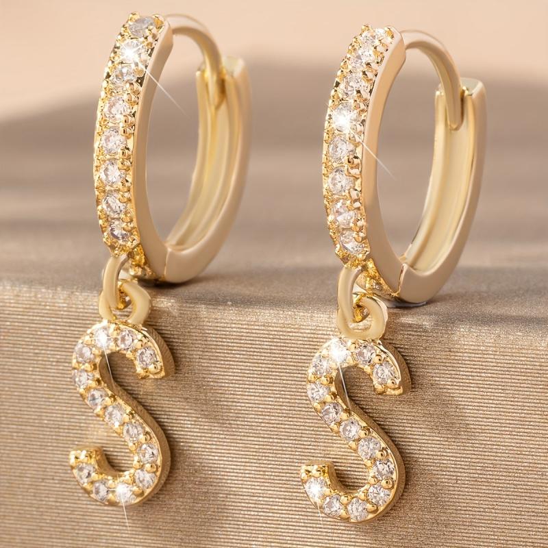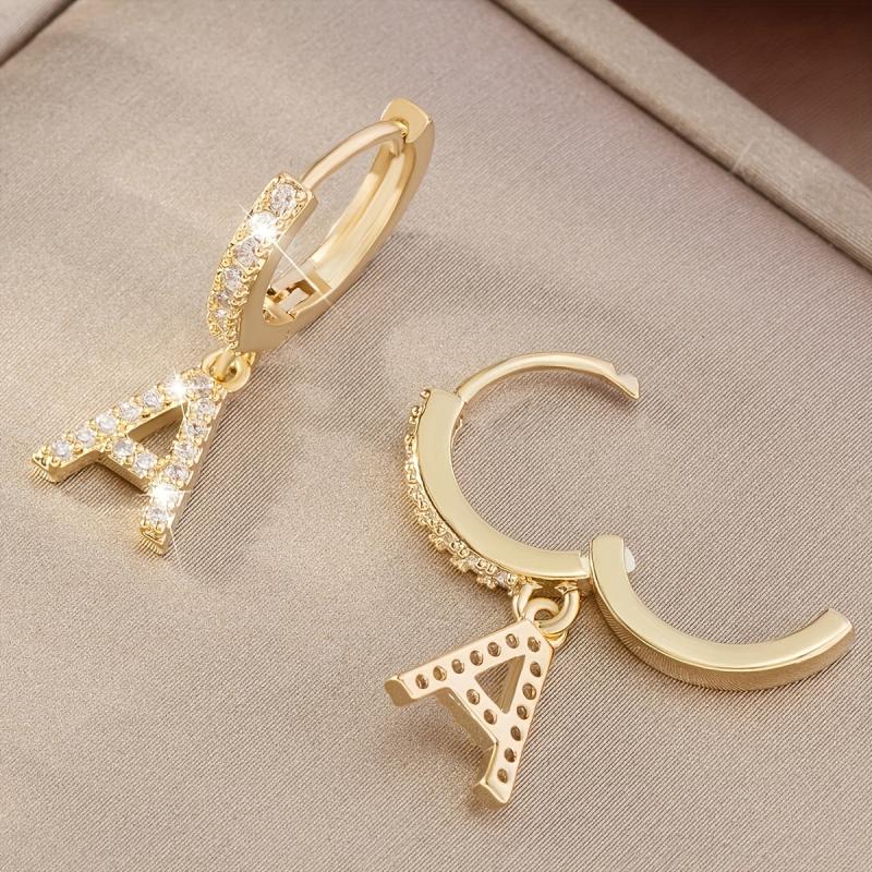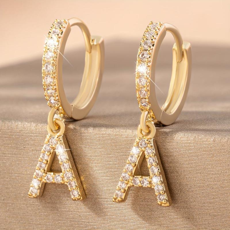 Letter Hoop CZ Initial Earrings Drop Jewelry