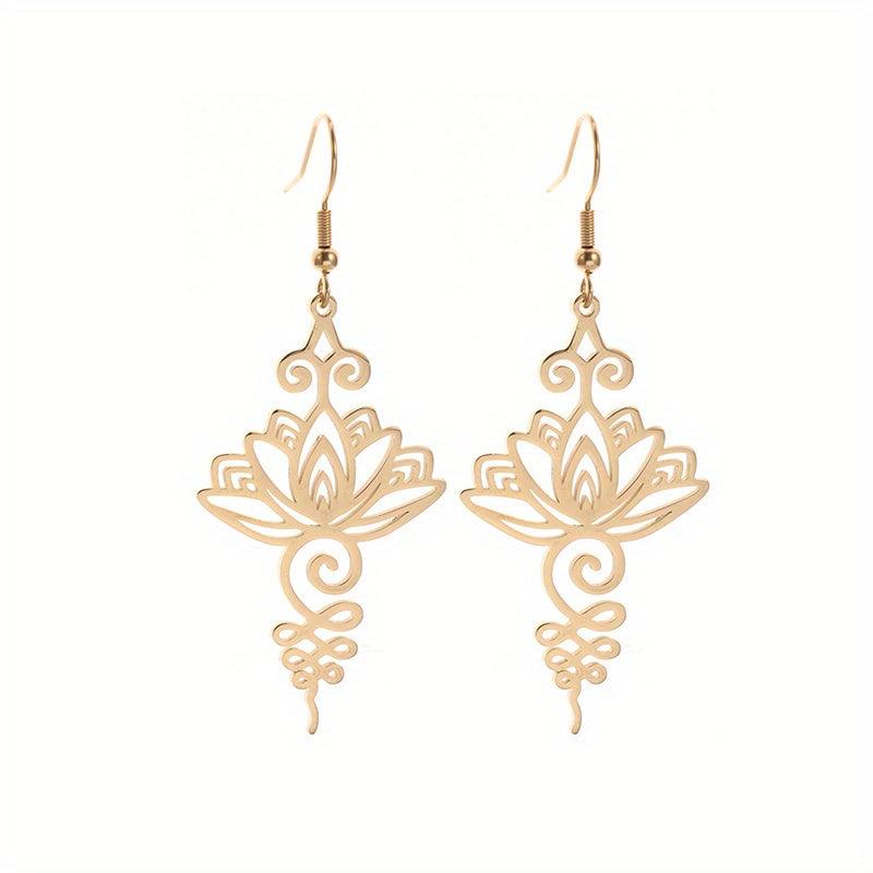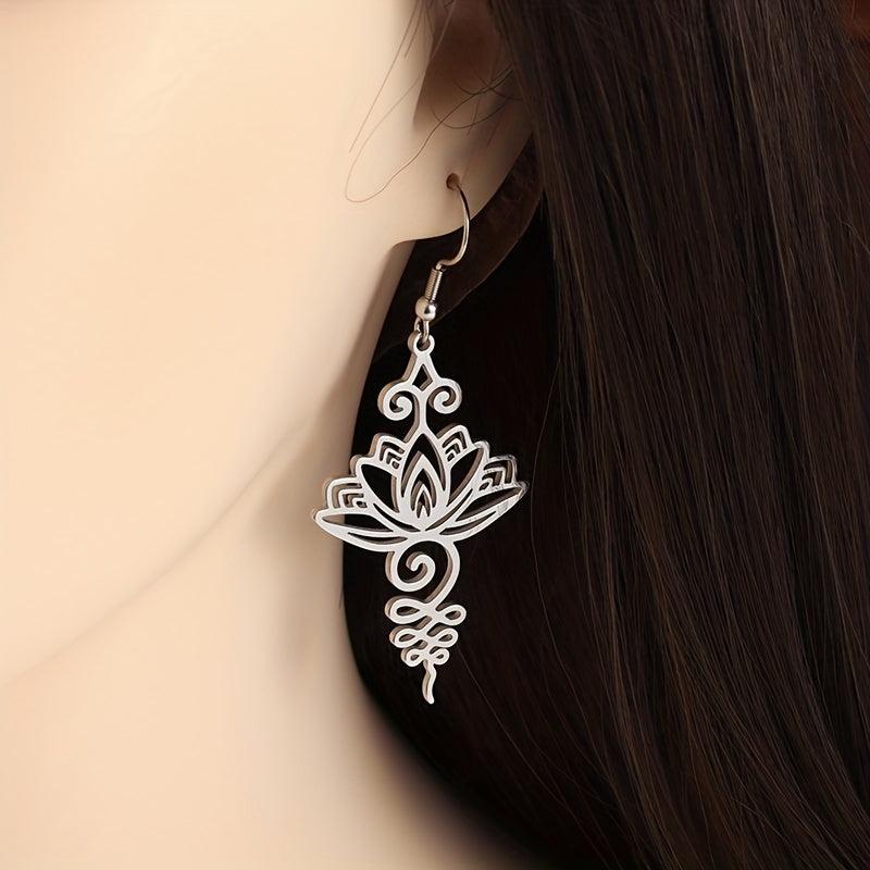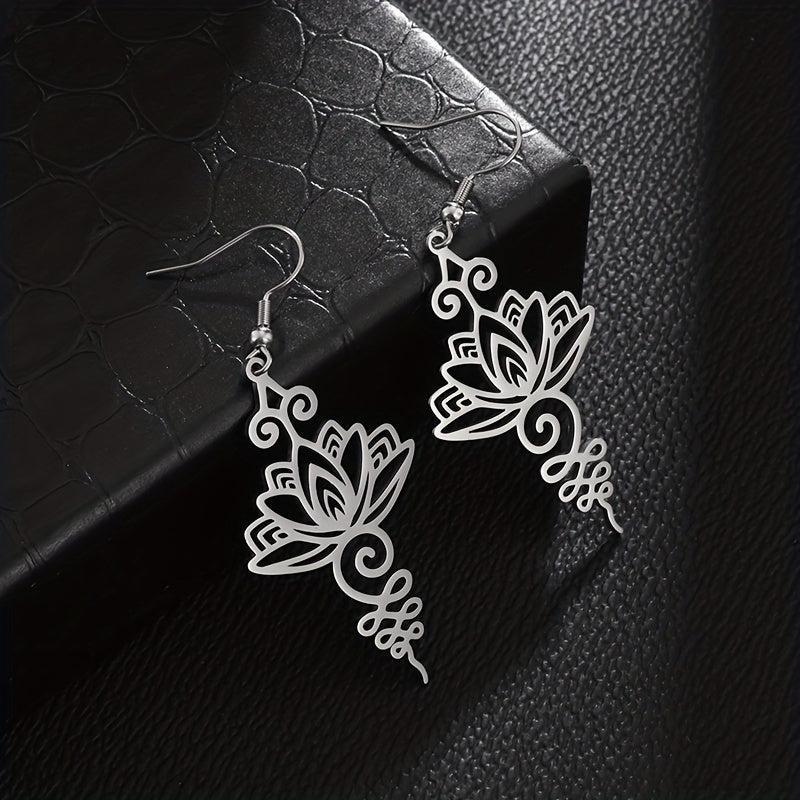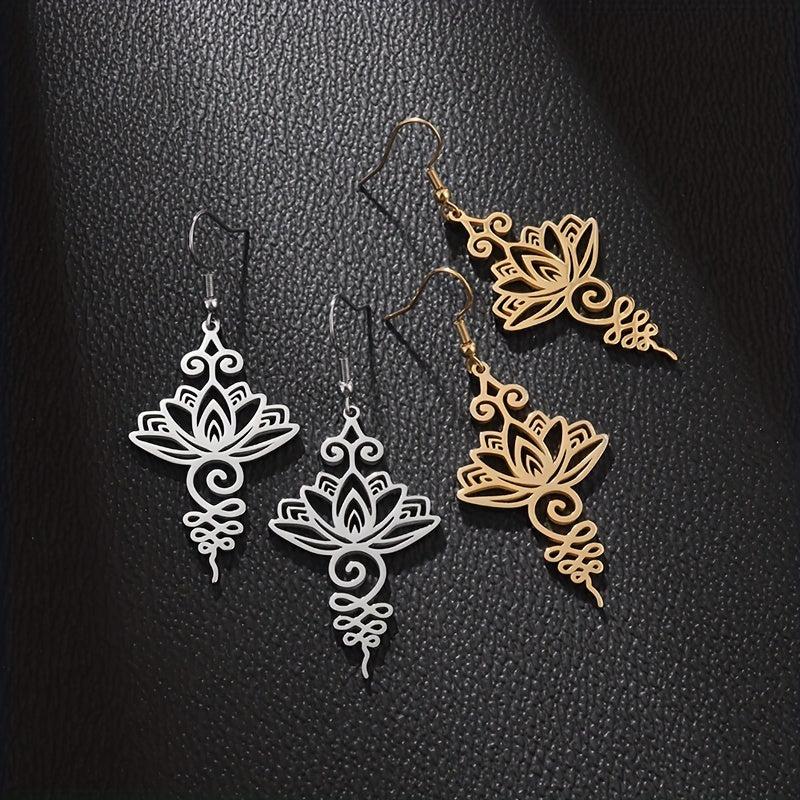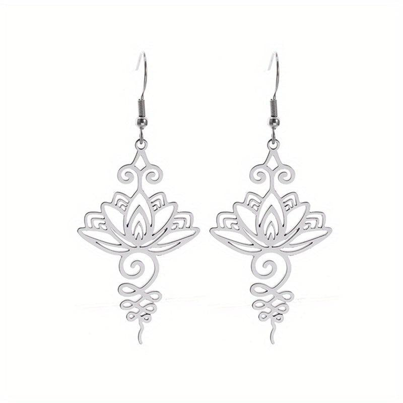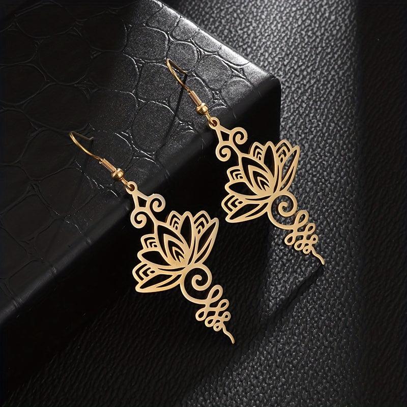 These classic women's earrings feature a lotus flower design, perfect for parties or everyday wear. Made of high-quality stainless steel, they are durable and long-lasting. Show your spiritual side with these beautiful Buddhist-inspired earrings.