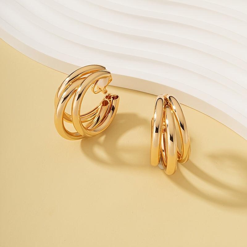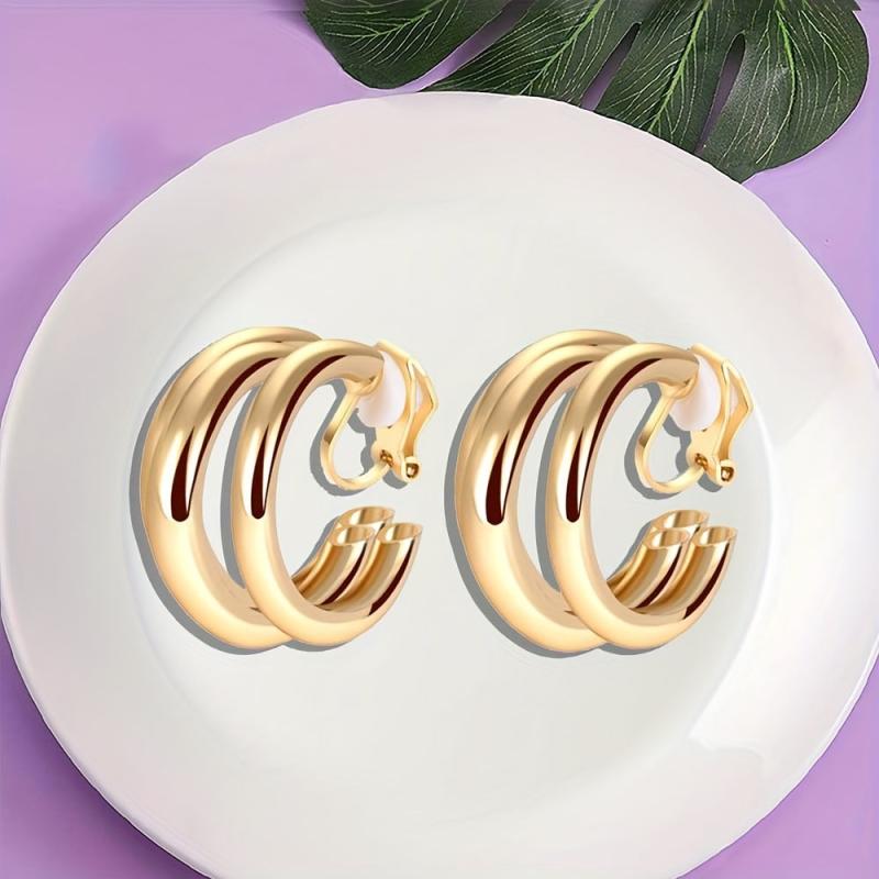 Make a statement with these modern and chic minimalist style clip earrings. These earrings feature a stylish C-shaped design with a glossy finish and a hollow half circle. No piercing required, perfect for adding a touch of elegance to your look.