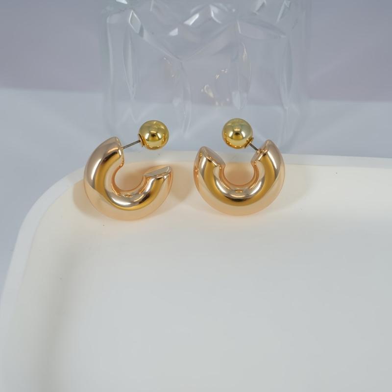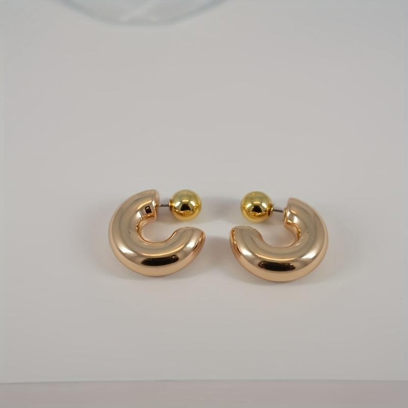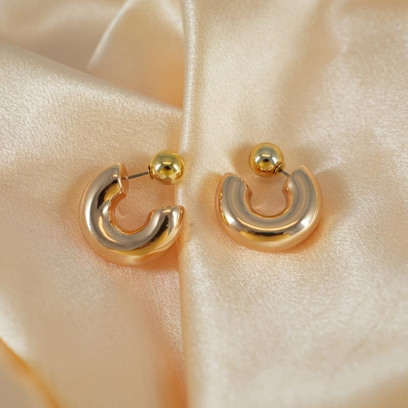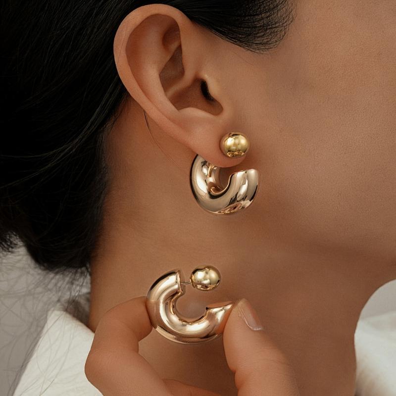 Add a touch of elegance to your evening outfits or vacation attire with these versatile C shape dangle earrings. The stainless steel posts are plated with golden accents for a chic look.