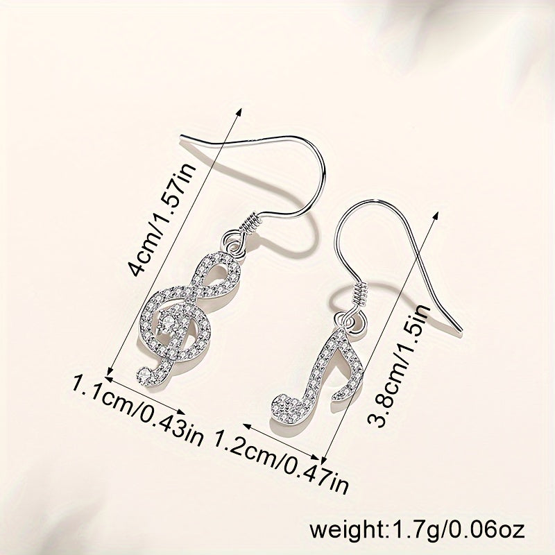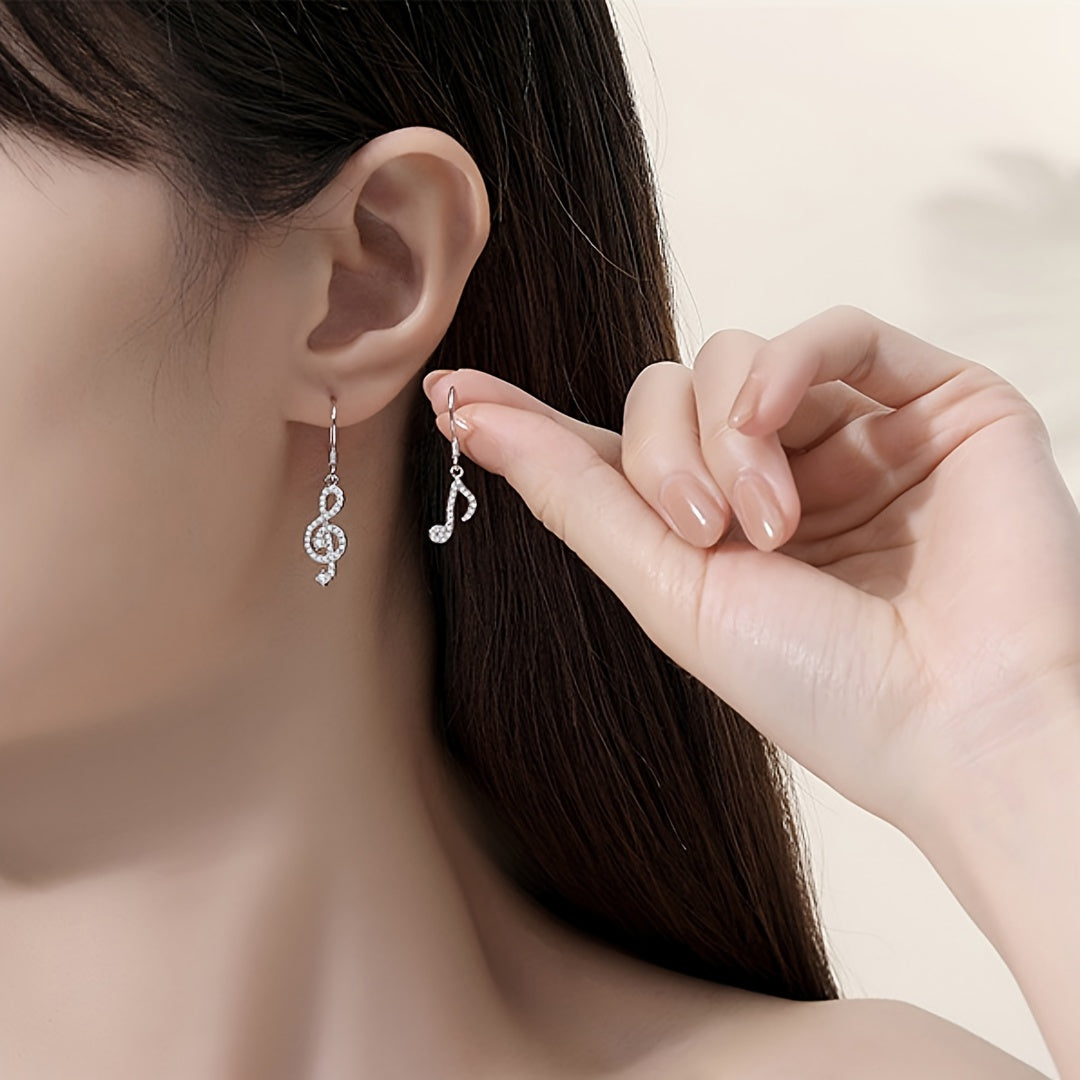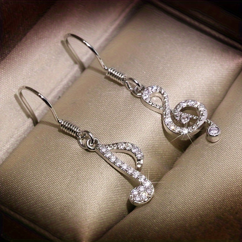 Music Note Earrings Blingbling Rhinestone Fashionable Party Style Dangling Hook