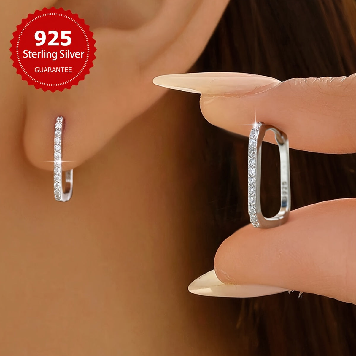 These oval hoop earrings feature synthetic cubic zirconia set in 925 sterling silver. They weigh only 1.2g, making them perfect for gifting on Valentine's Day or wearing as a vacation accessory.