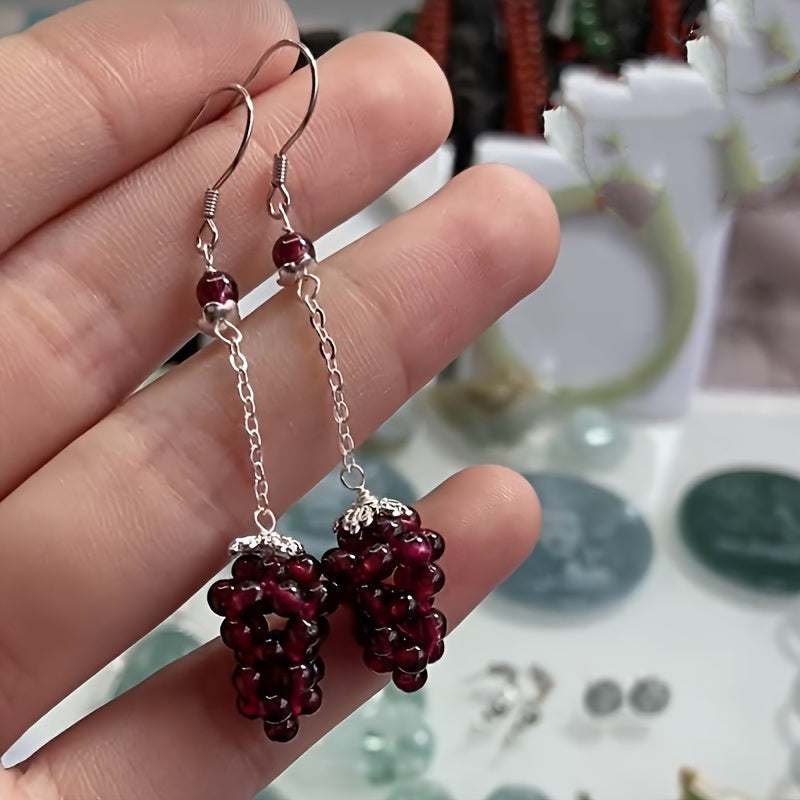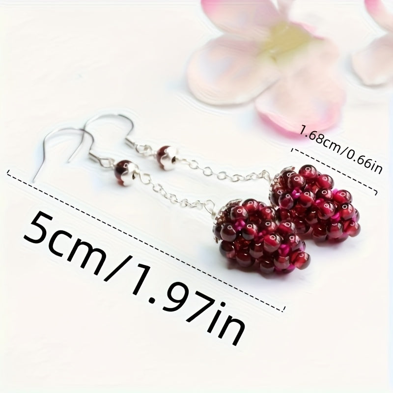 Add a pop of color to your outfit with these stunning red garnet drop earrings. The hypoallergenic 925 sterling silver hooks make them perfect for parties and holidays. Their lightweight design adds a touch of boho chic to your look.