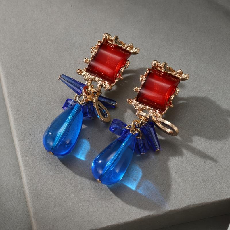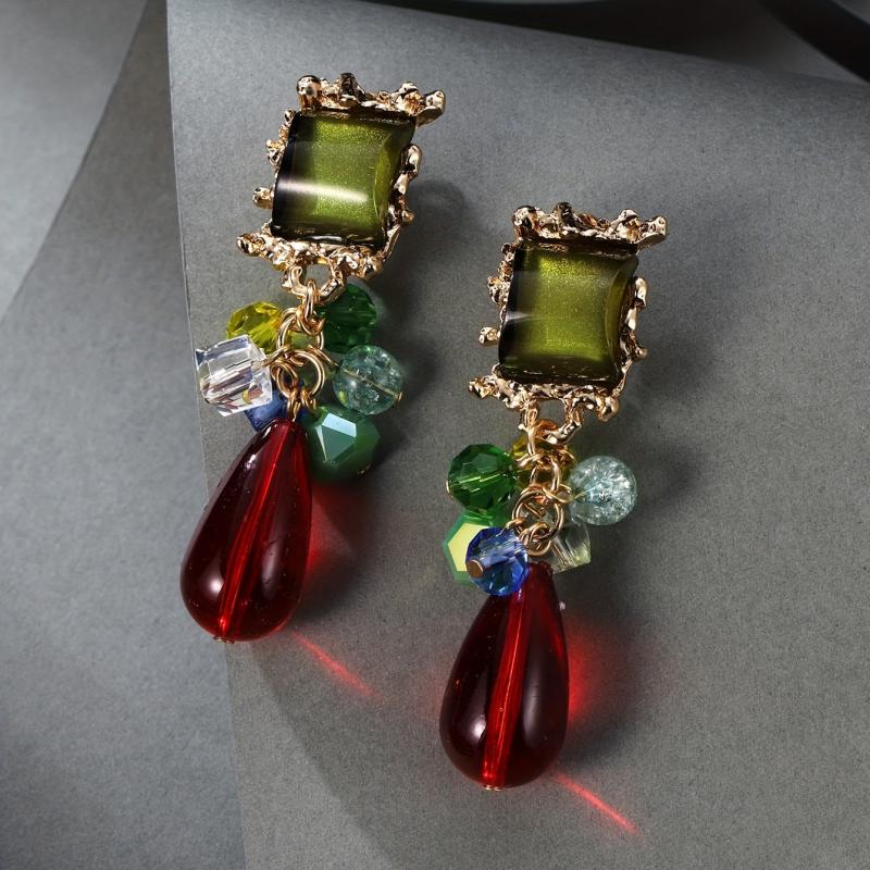 Red & Green Gem Clip On Earrings 18K Plated Zinc Alloy
