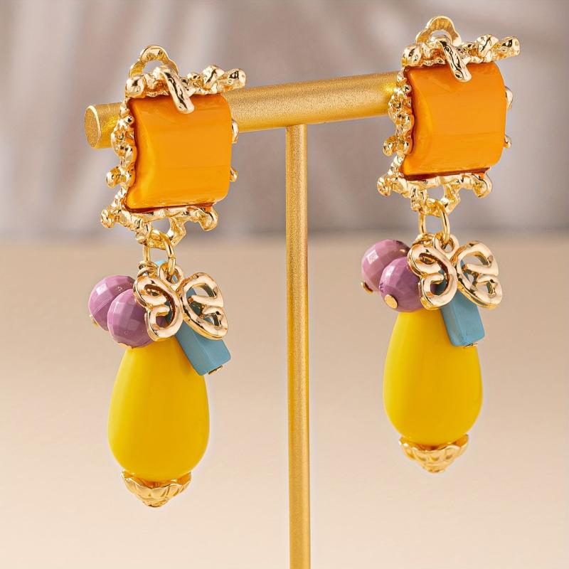 Add a touch of elegance to your outfit with these stunning clip-on earrings featuring red and green synthetic gems. Perfect for all seasons and special occasions, including Ramadan parties. Made with high-quality copper ear needles for comfort and style.