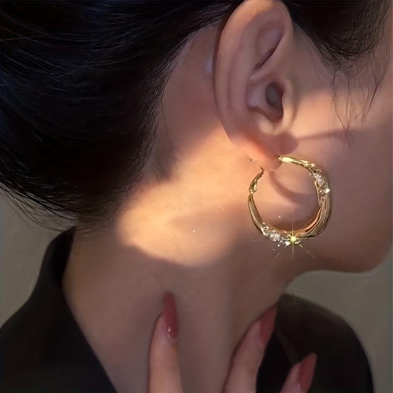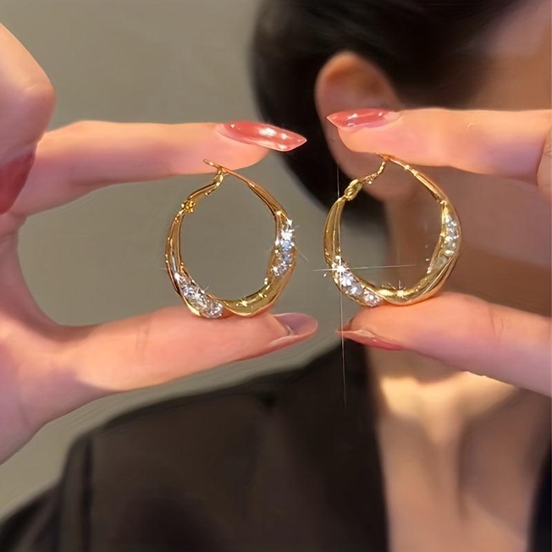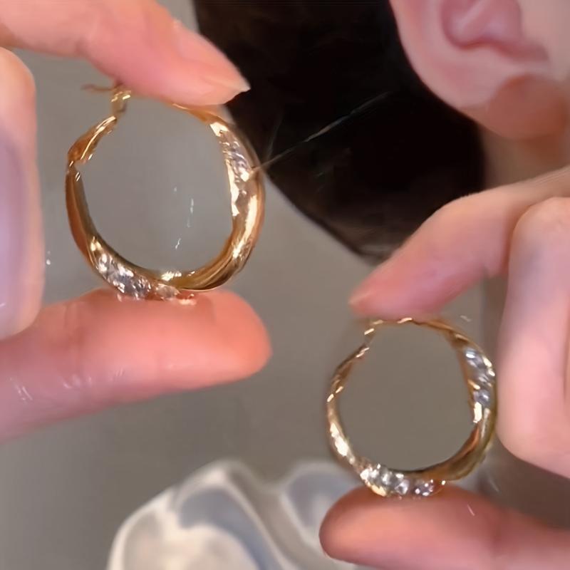 Rhinestone Hoop Earrings Minimalist Alloy w/ Stainless Steel Posts