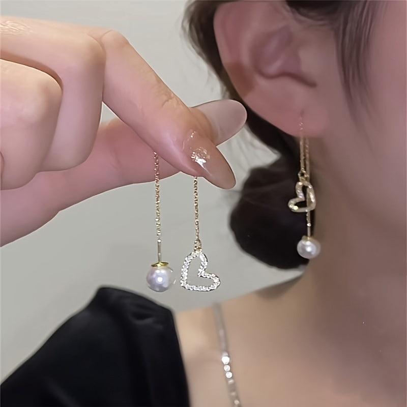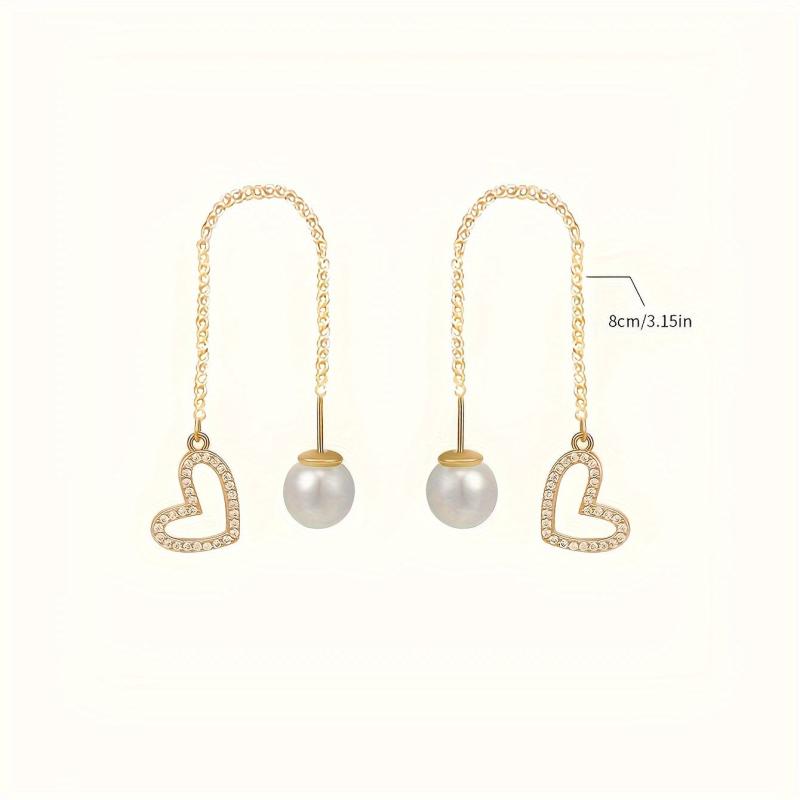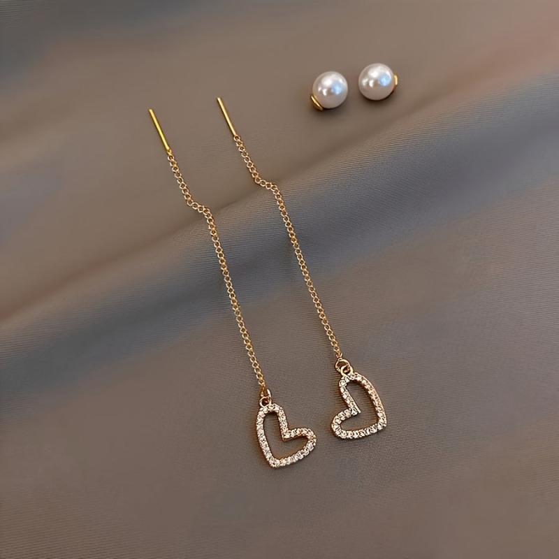 These fashionable earrings are adorned with rhinestones and love charms for a stylish look.