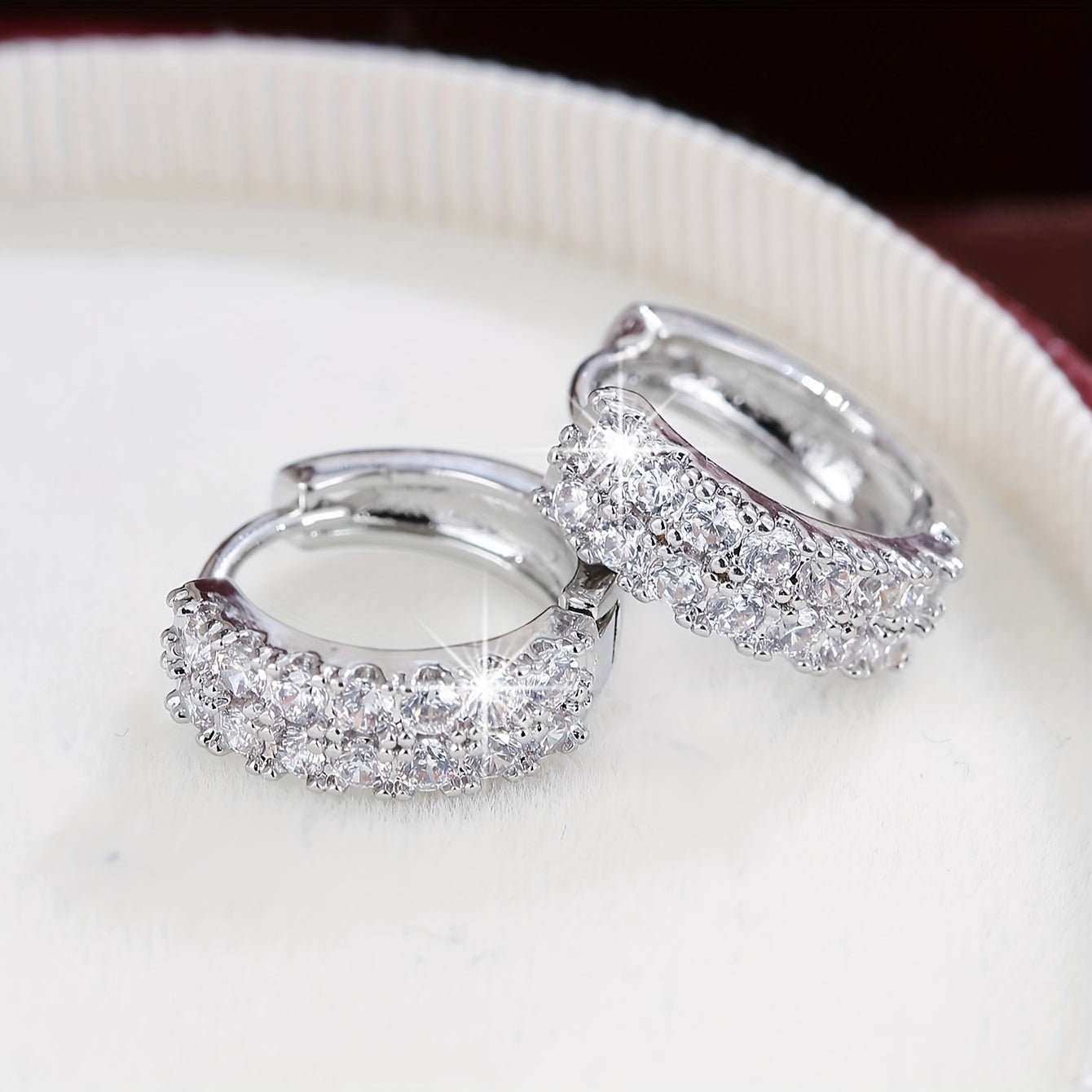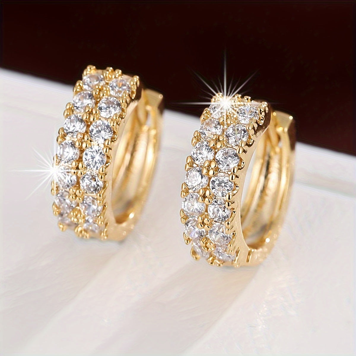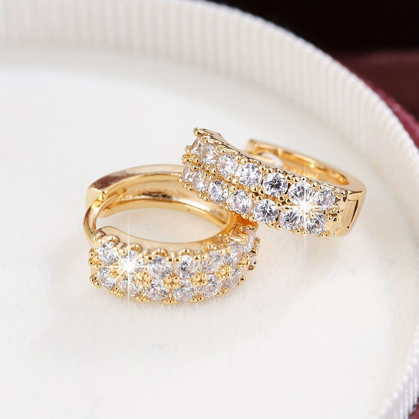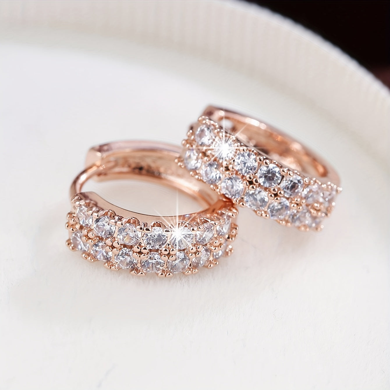 Add a touch of elegance to your look with these sparkling rose gold tone hoop earrings featuring round cut cubic zirconia gemstones. Perfect for everyday wear or special occasions.