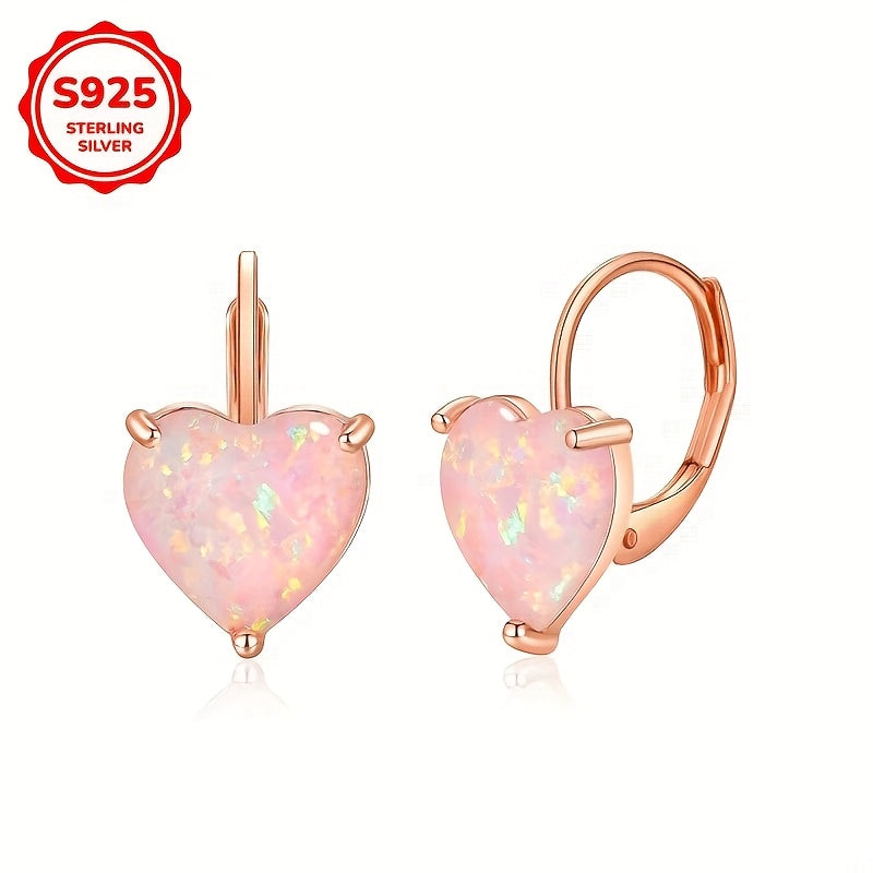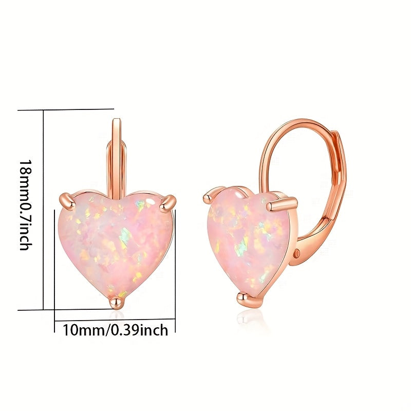 These earrings are made of 925 sterling silver with rose gold plated hooks and heart-shaped synthetic opal drops. They are low allergy and lightweight at only 2.5g, making them perfect for daily wear or as daily earrings.
