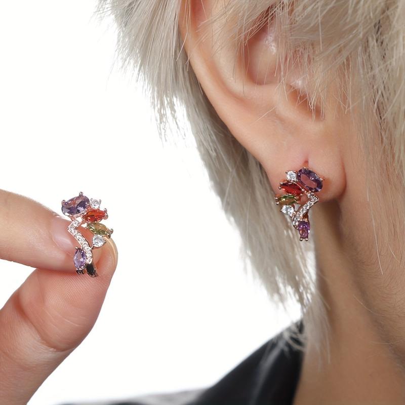 Add a pop of color to your outfit with these elegant multicolor birthstone dangle earrings. Featuring marquise cut stones in shades of red, purple, and olive, these earrings are perfect for adding a touch of glamour to any look.