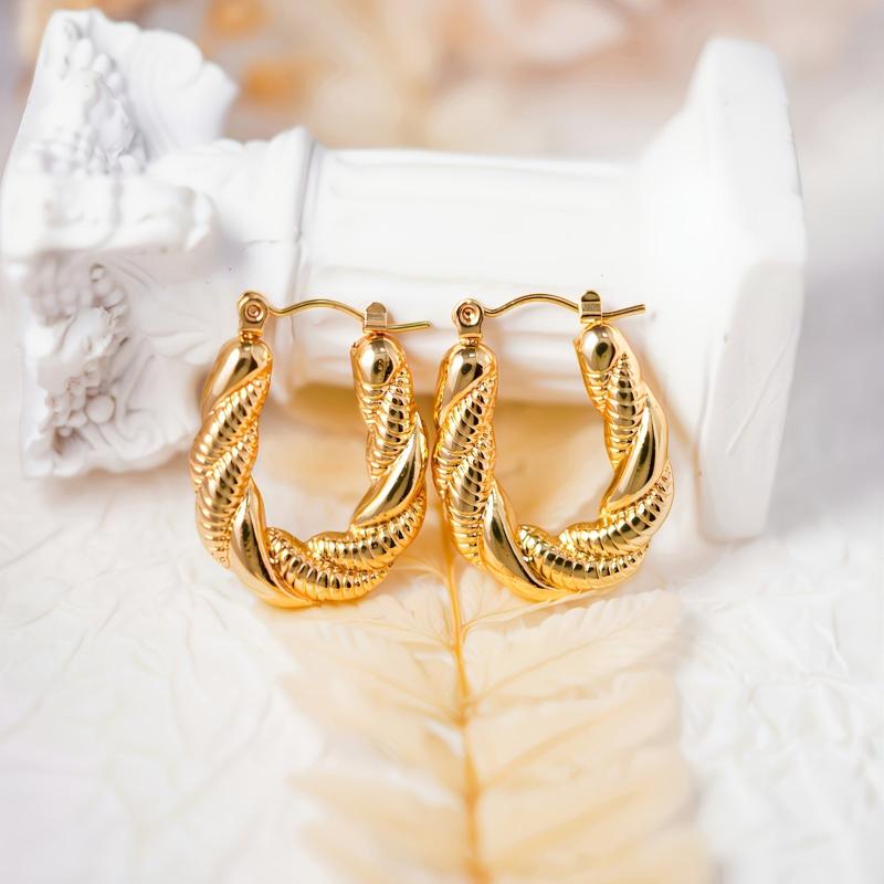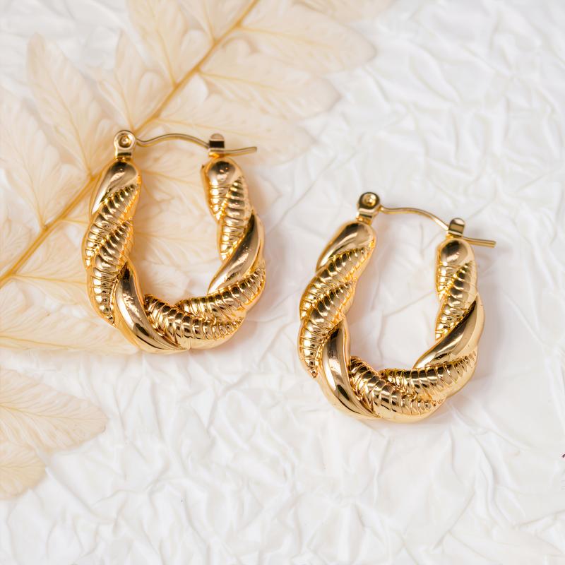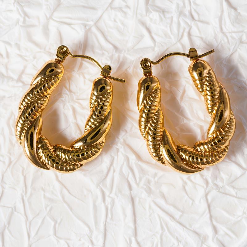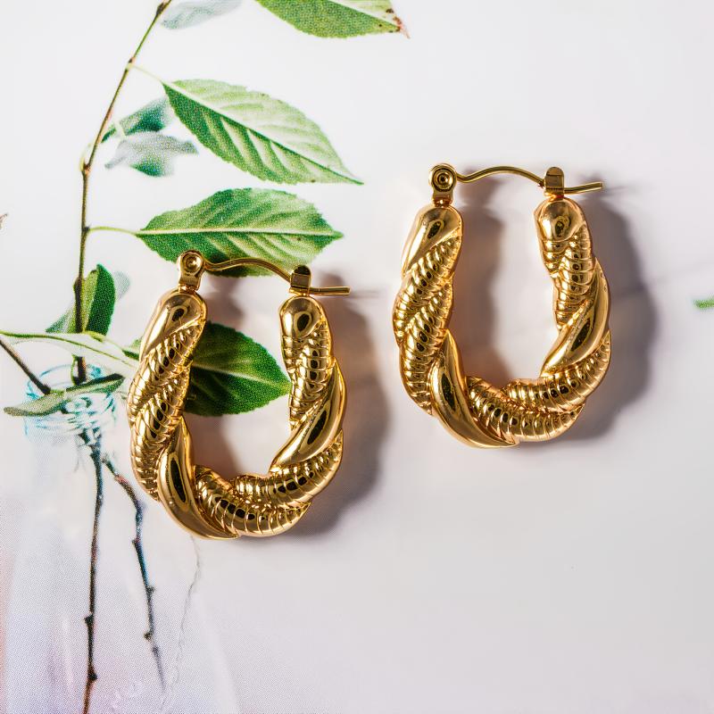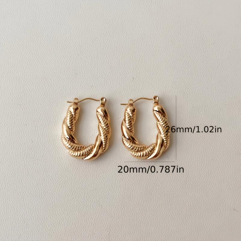 Classic and stylish U shape twist earrings with intricate interwoven patterns, suitable for all seasons and holidays.