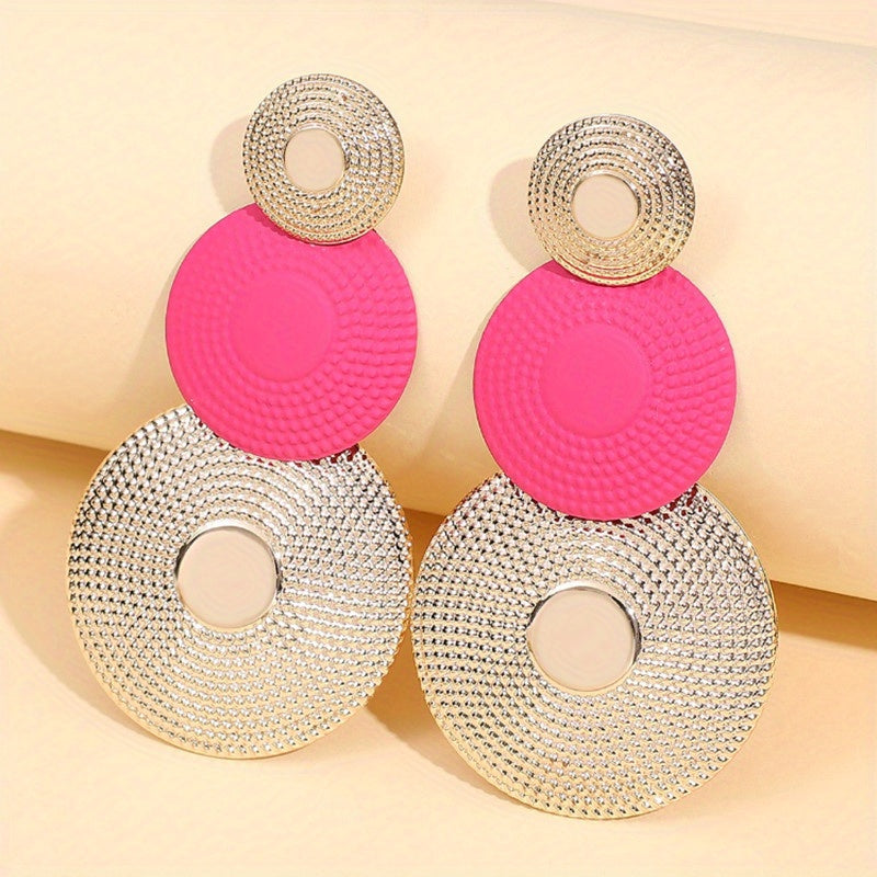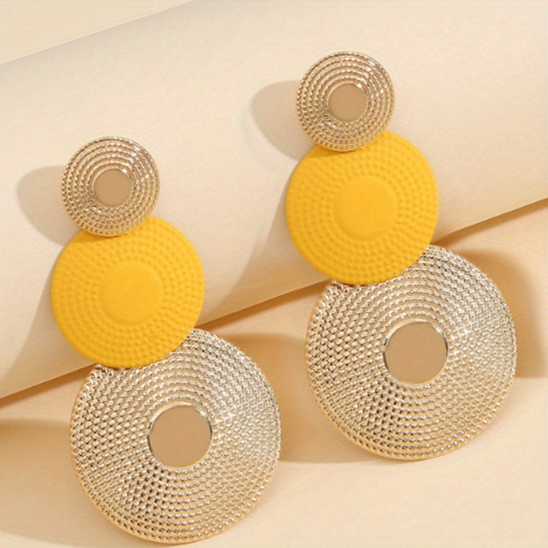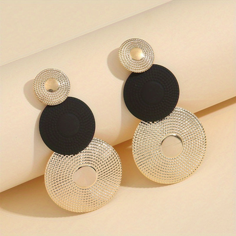 These stylish earrings feature a round convex design with water ripple pattern, made from high-quality alloy material. Perfect for parties, engagements, or as a gift.