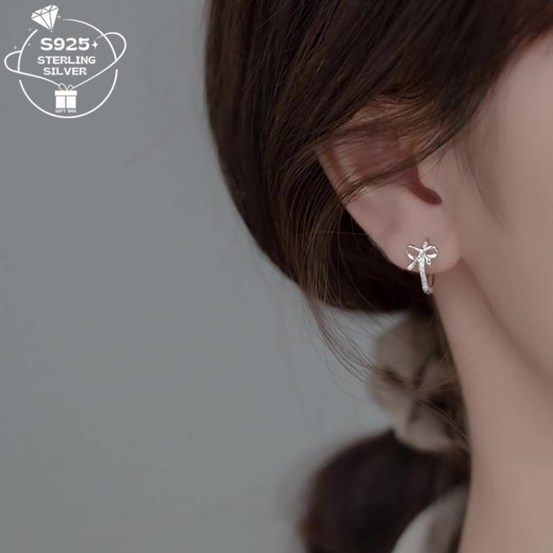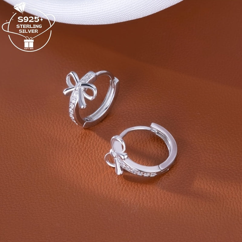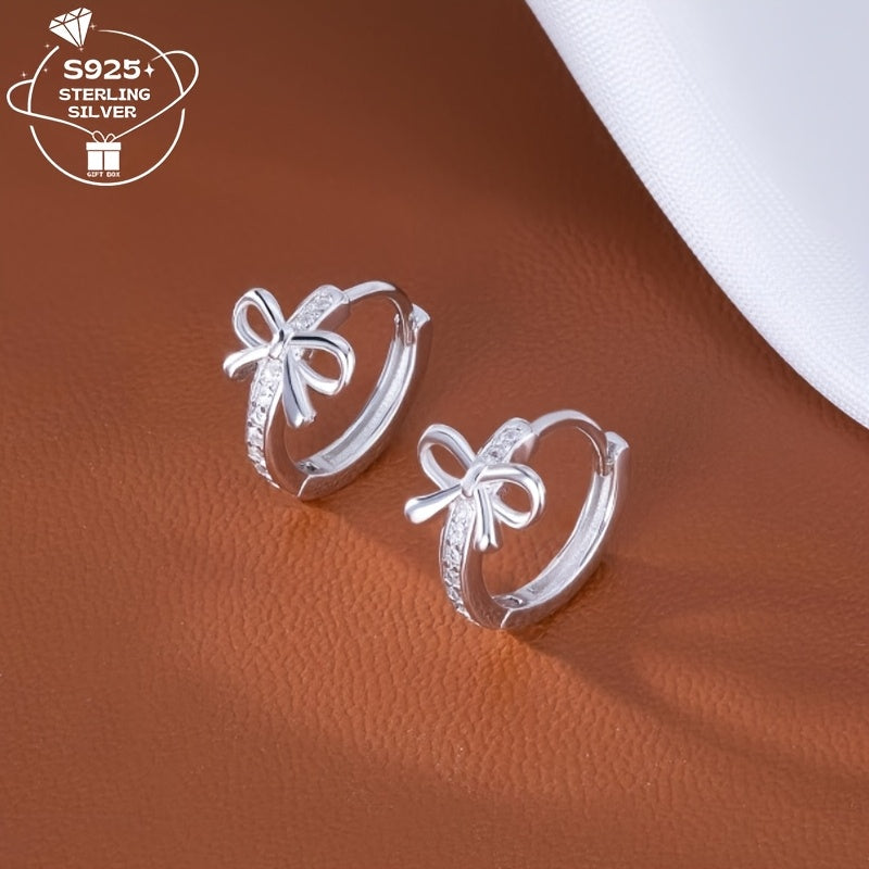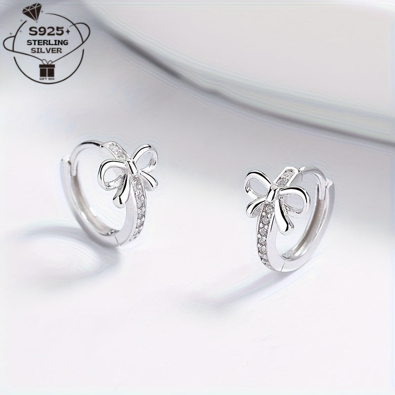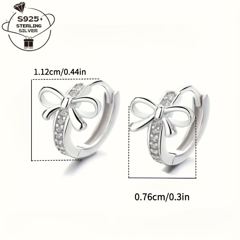 These cute S925 sterling silver earrings feature a mini bow design with synthetic zirconia, making them perfect for daily wear or as a gift. They are versatile and ideal for Valentine's Day.