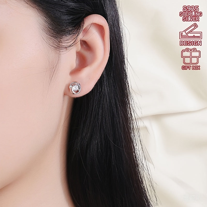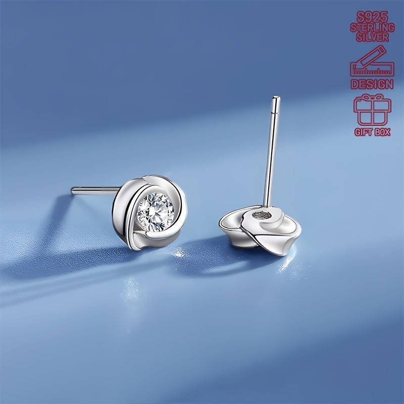 These elegant stud earrings feature a rose design in pure S925 silver with sparkling cubic zirconia accents. Perfect for daily wear or as a gift for someone special.