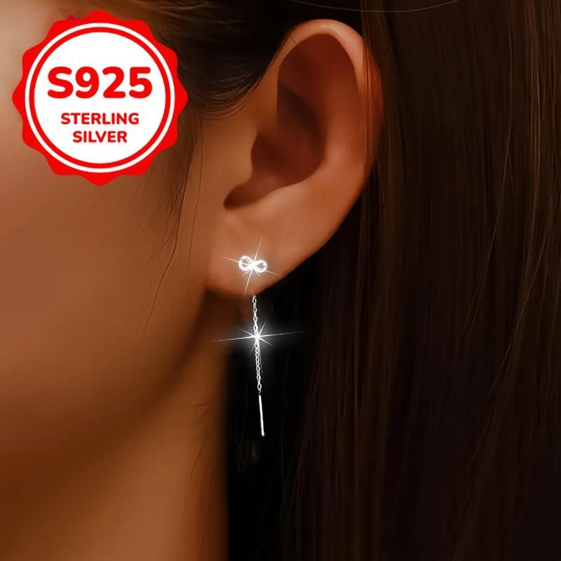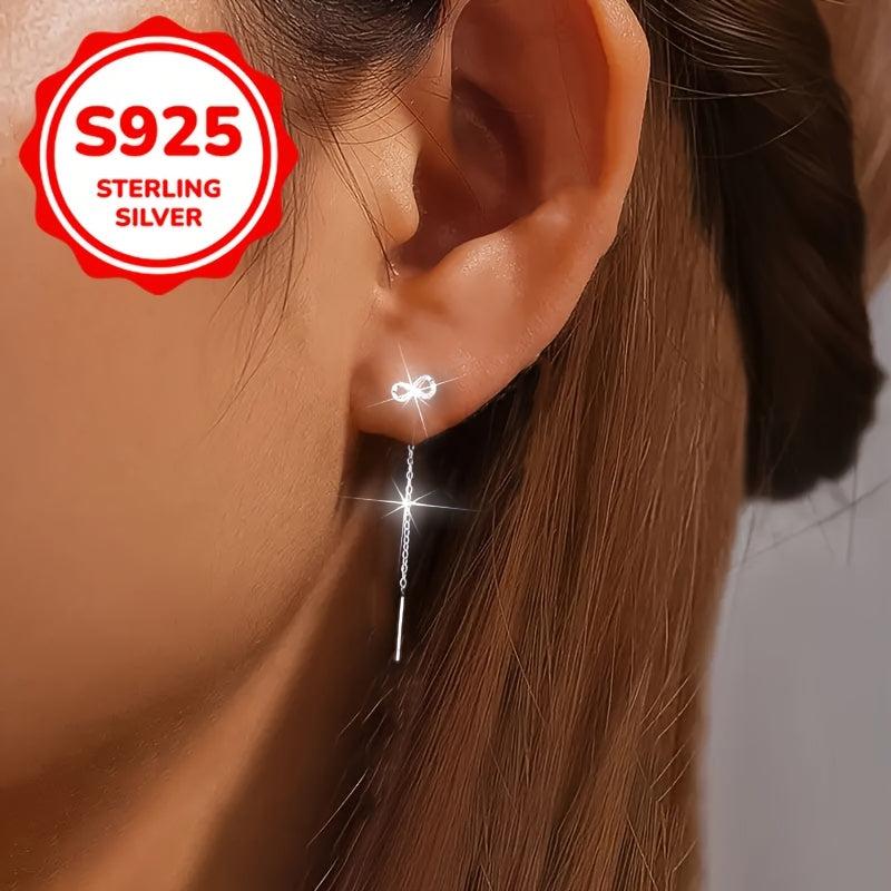 These S925 silver earrings with synthetic zirconia inlays are a chic accessory for daily wear. Perfect for Valentine's, anniversary, or any occasion.