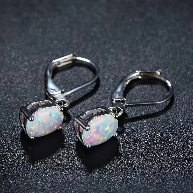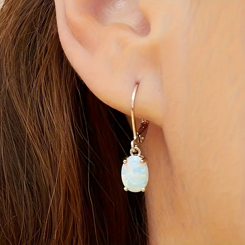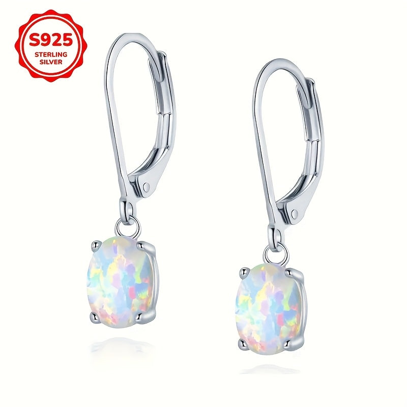 Add a touch of elegance to your casual attire with these S925 silver drop earrings featuring sparkling opal and 5A synthetic zirconia. They are hypoallergenic and make the perfect gift for her.