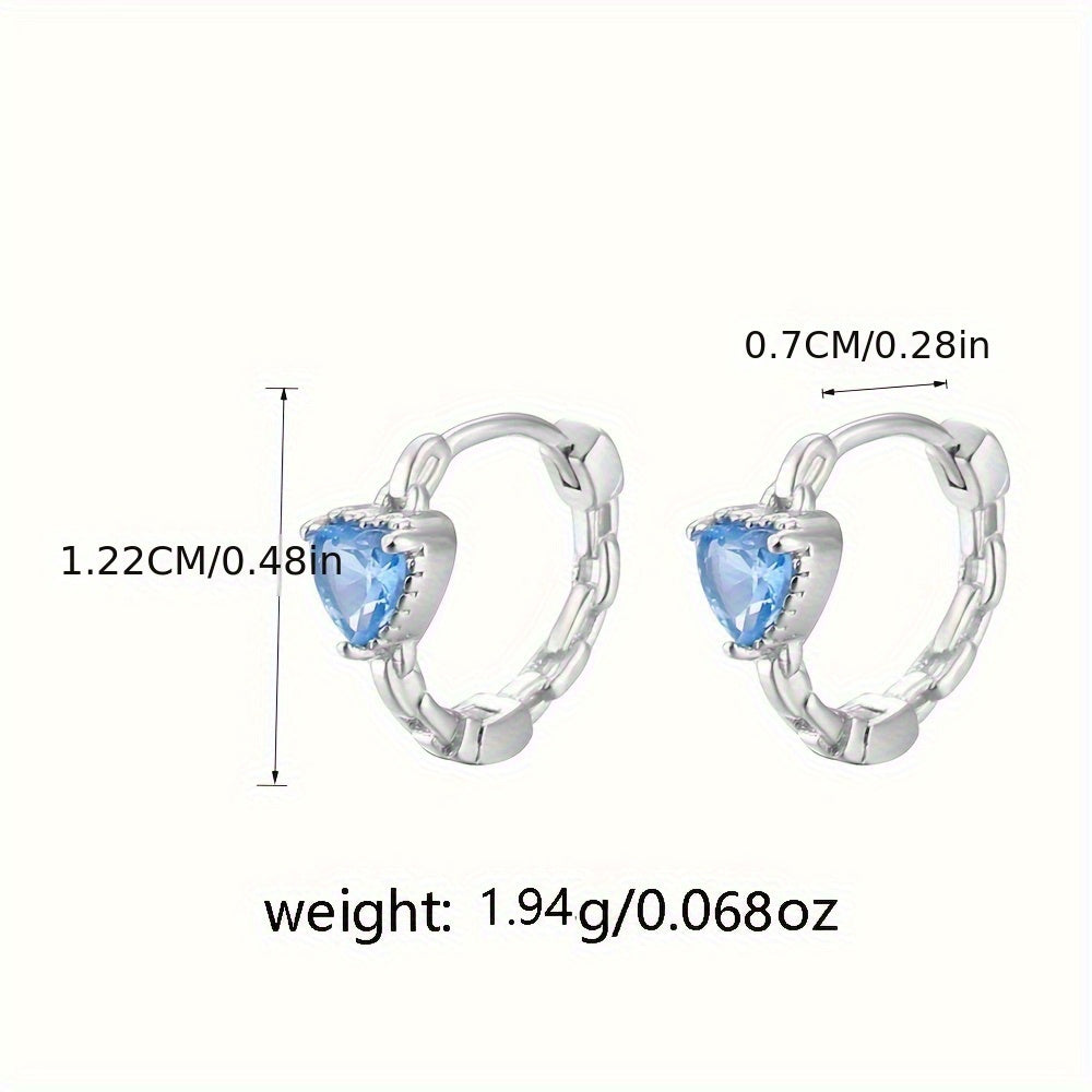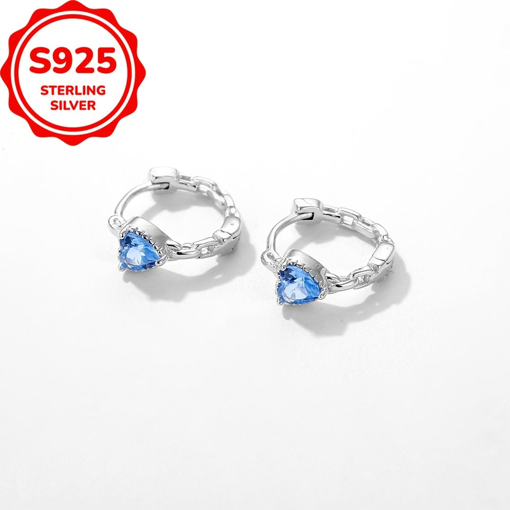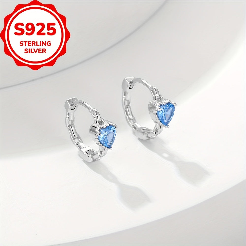 These S925 sterling silver earrings feature synthetic zirconia heart shapes that are perfect for daily wear or as a graduation gift. They are a versatile accessory for any season or party.