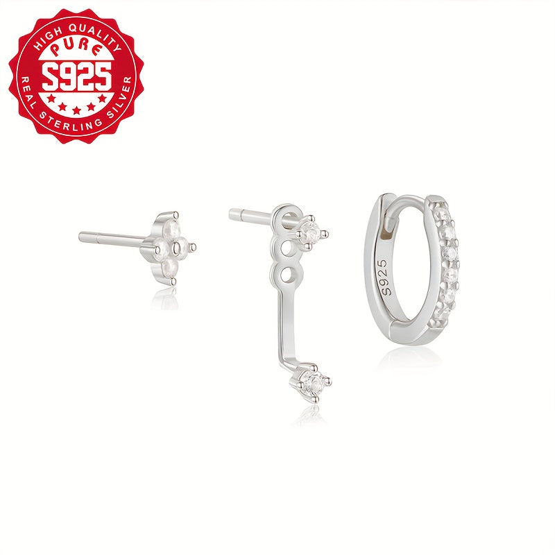 Elegant three-piece set of S925 silver earrings featuring sparkling synthetic Zirconia in a beautiful floral design. Perfect for women who love versatile and stylish jewelry.