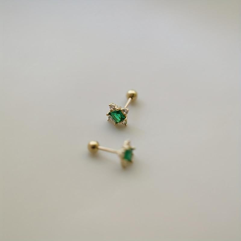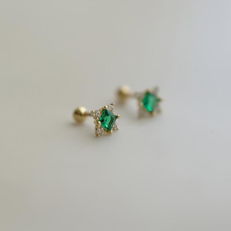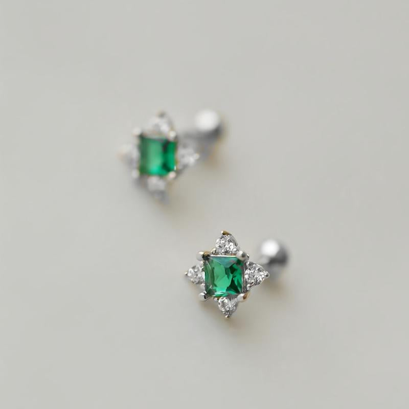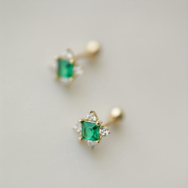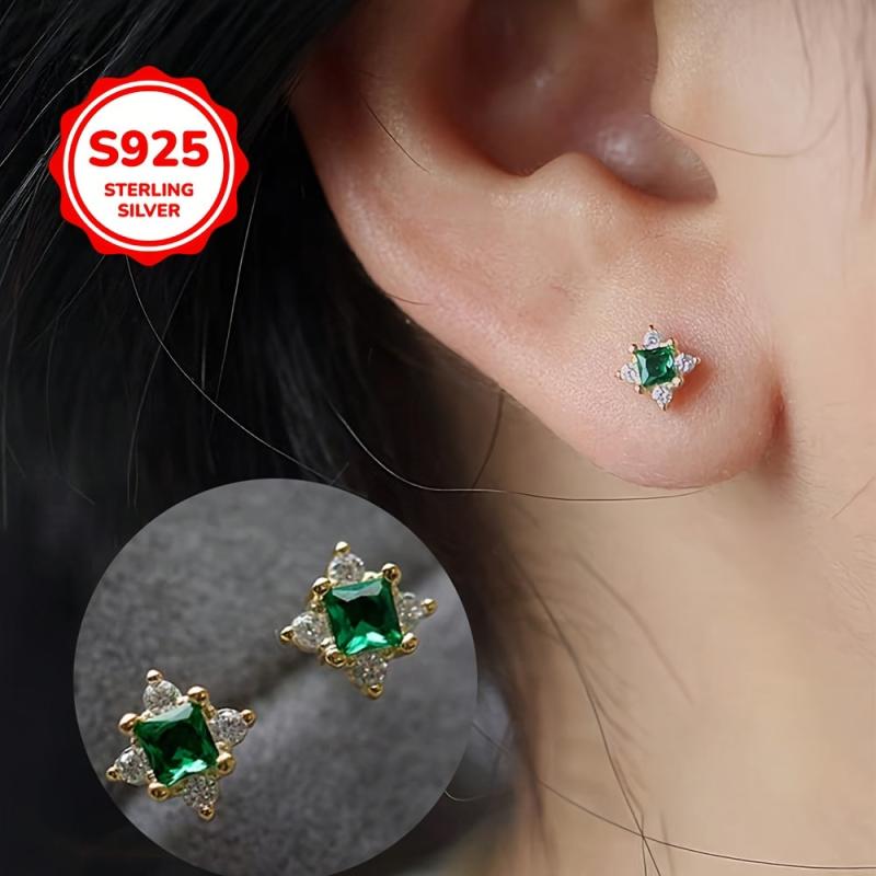 These elegant earrings are made of S925 silver and feature mini green synthetic zirconia squares, perfect for birthdays, Valentine's Day, or Christmas gifts.