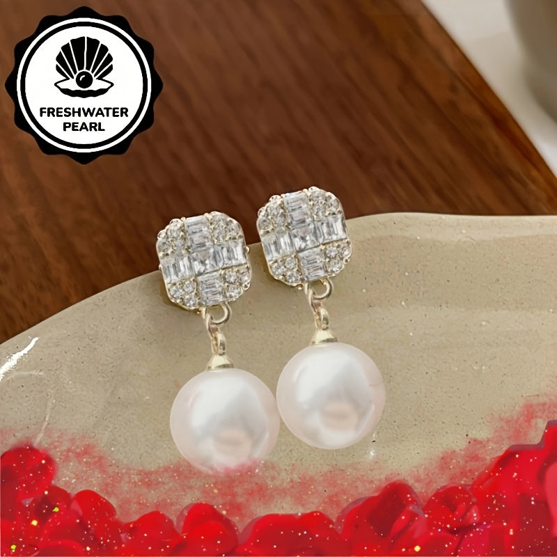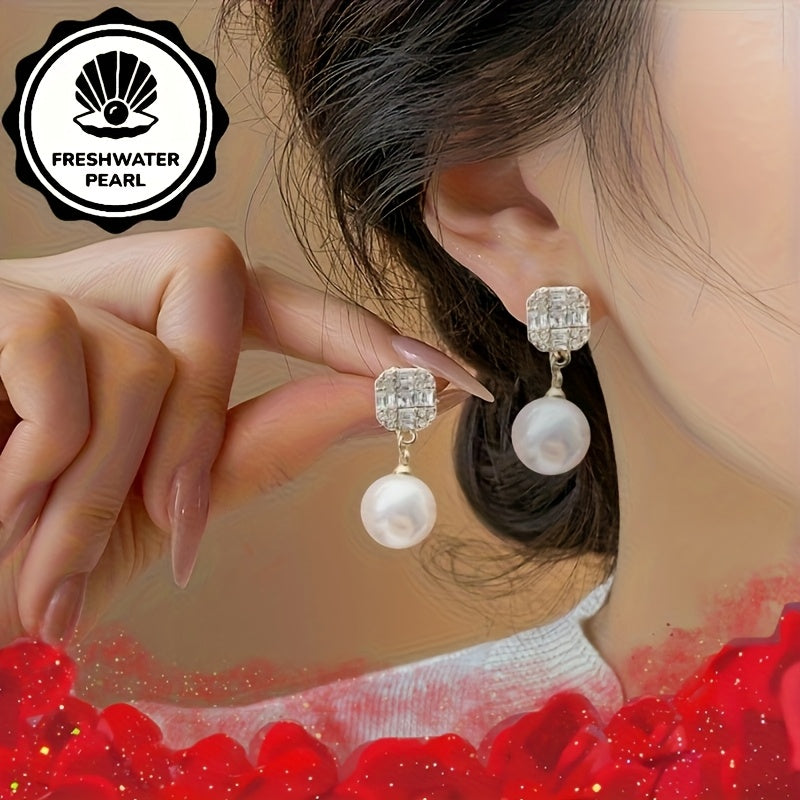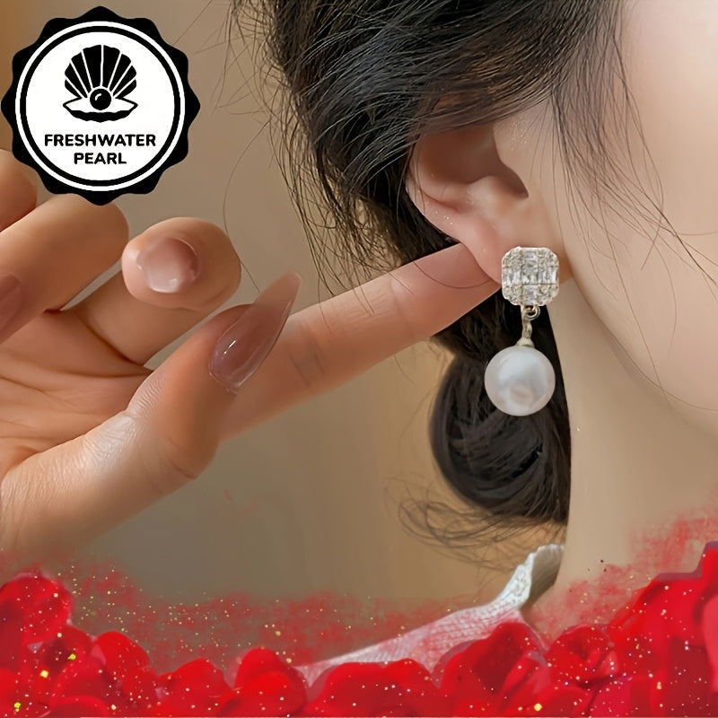 These stunning stud earrings feature freshwater pearls, rhinestones, and S925 silver needle. Versatile for all seasons, perfect for gifts or special occasions.