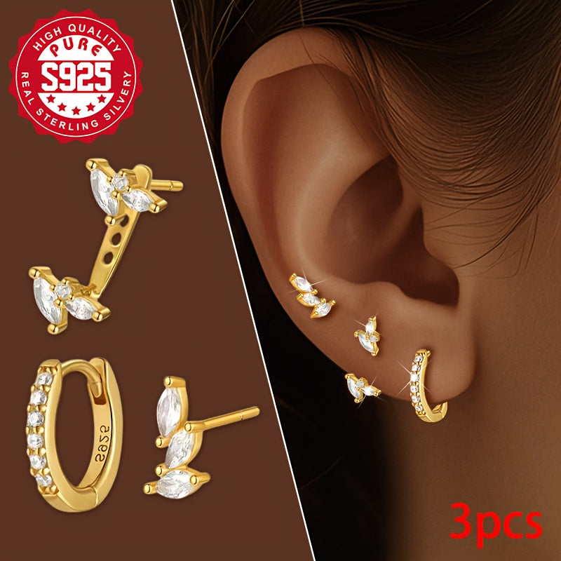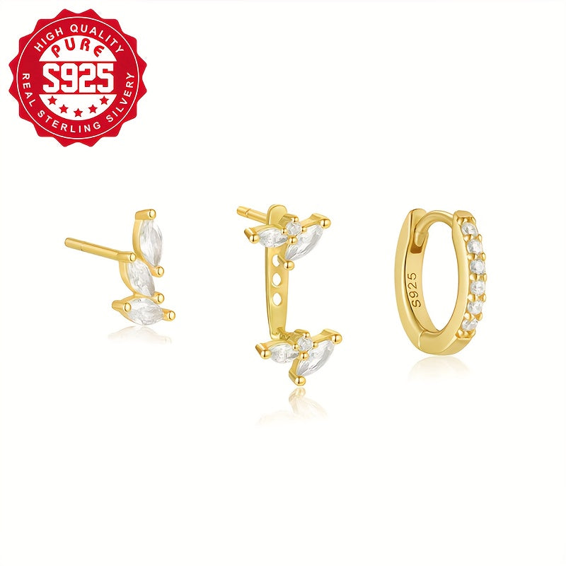 These elegant earrings feature a combination of three single-sided S925 silver earrings with synthetic zirconia inlay. They are perfect for wearing to banquets and other special occasions.