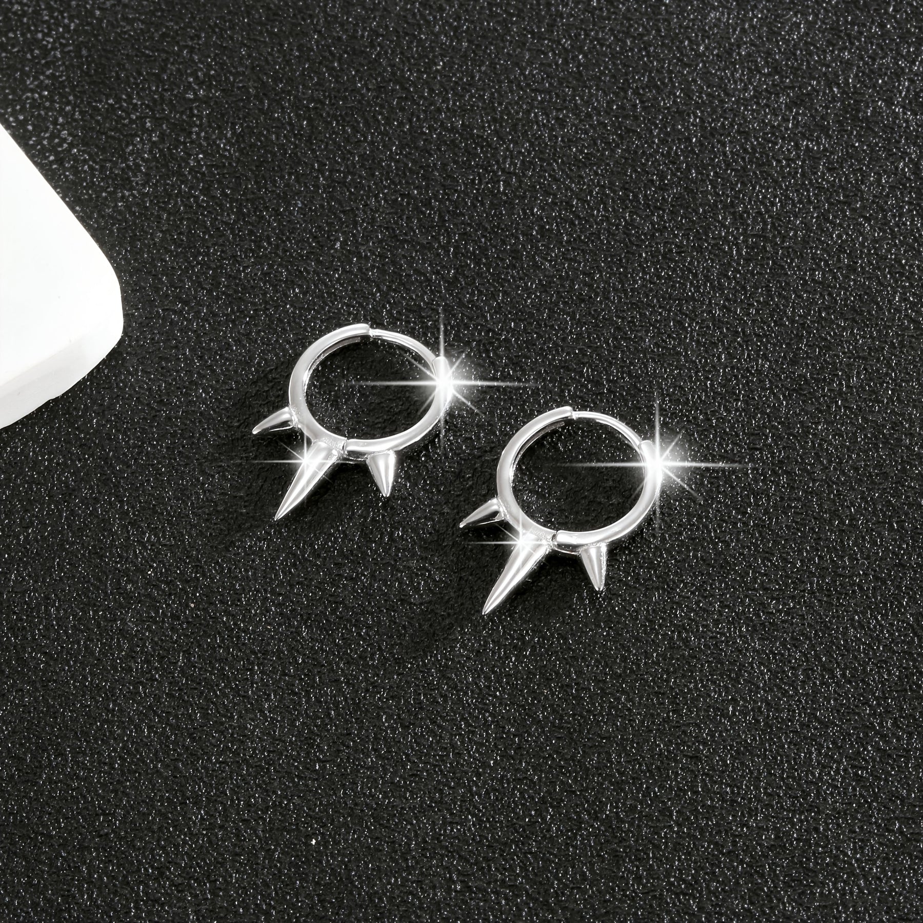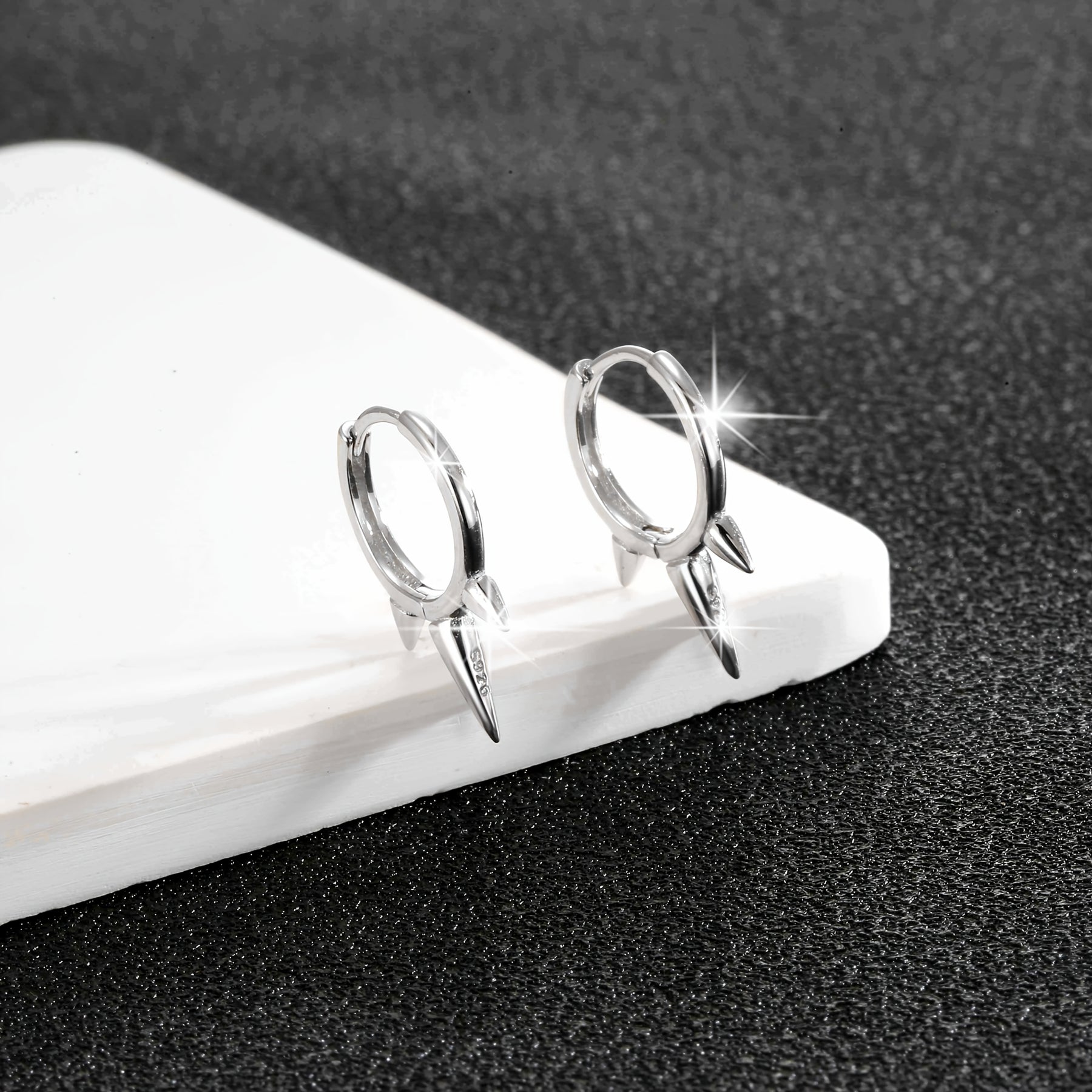 Discover the hip hop punk style with these S925 pure Silvery earrings. The intricate geometric design and irregular shapes make them a unique accessory.