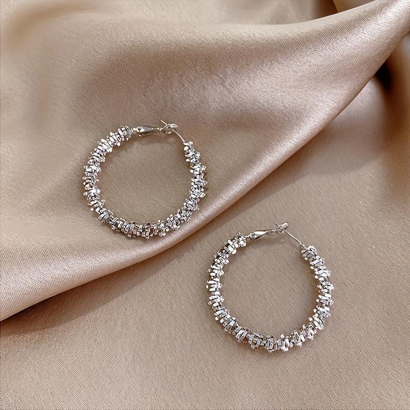 S925 Silvery Needle Exaggerated Metal Circle Earrings