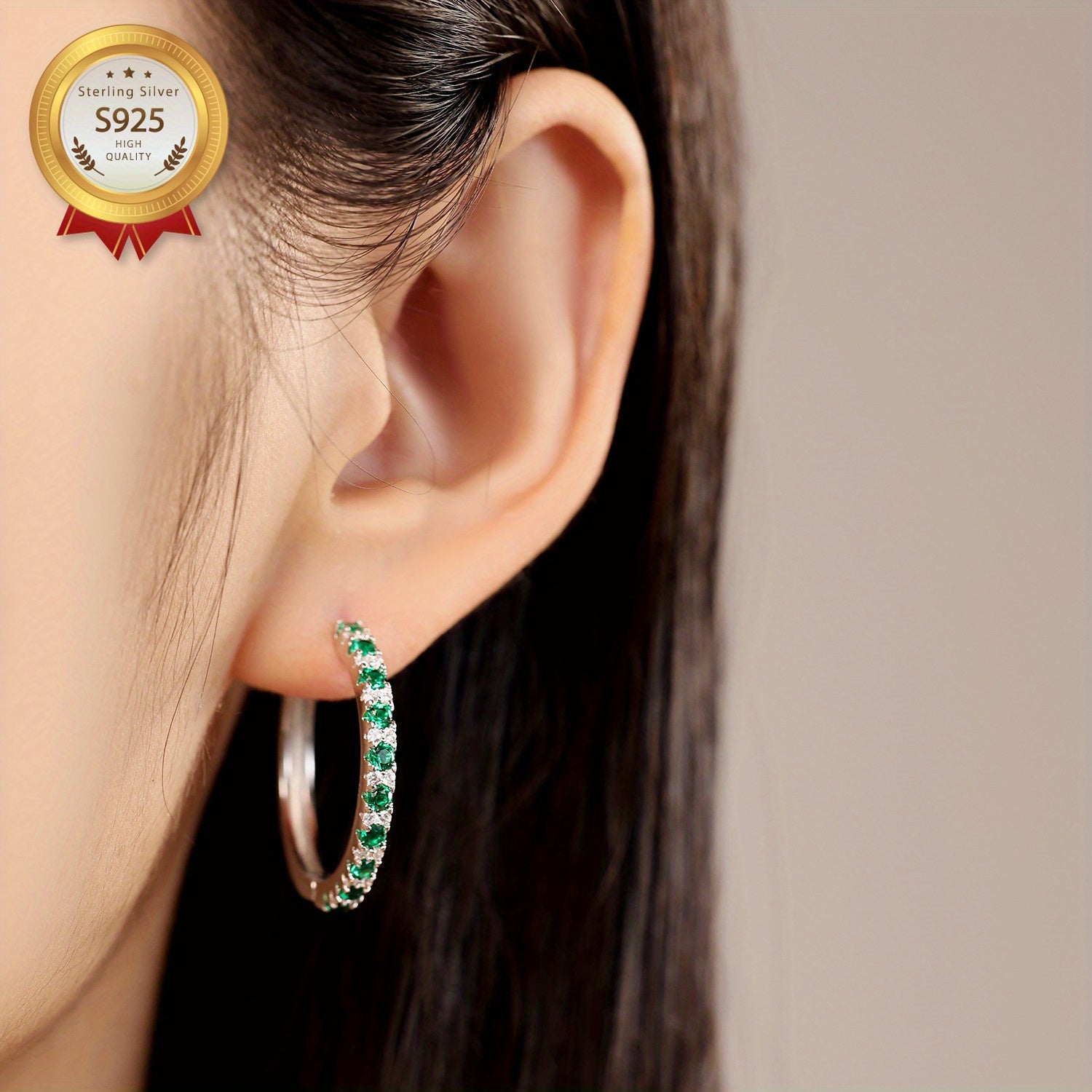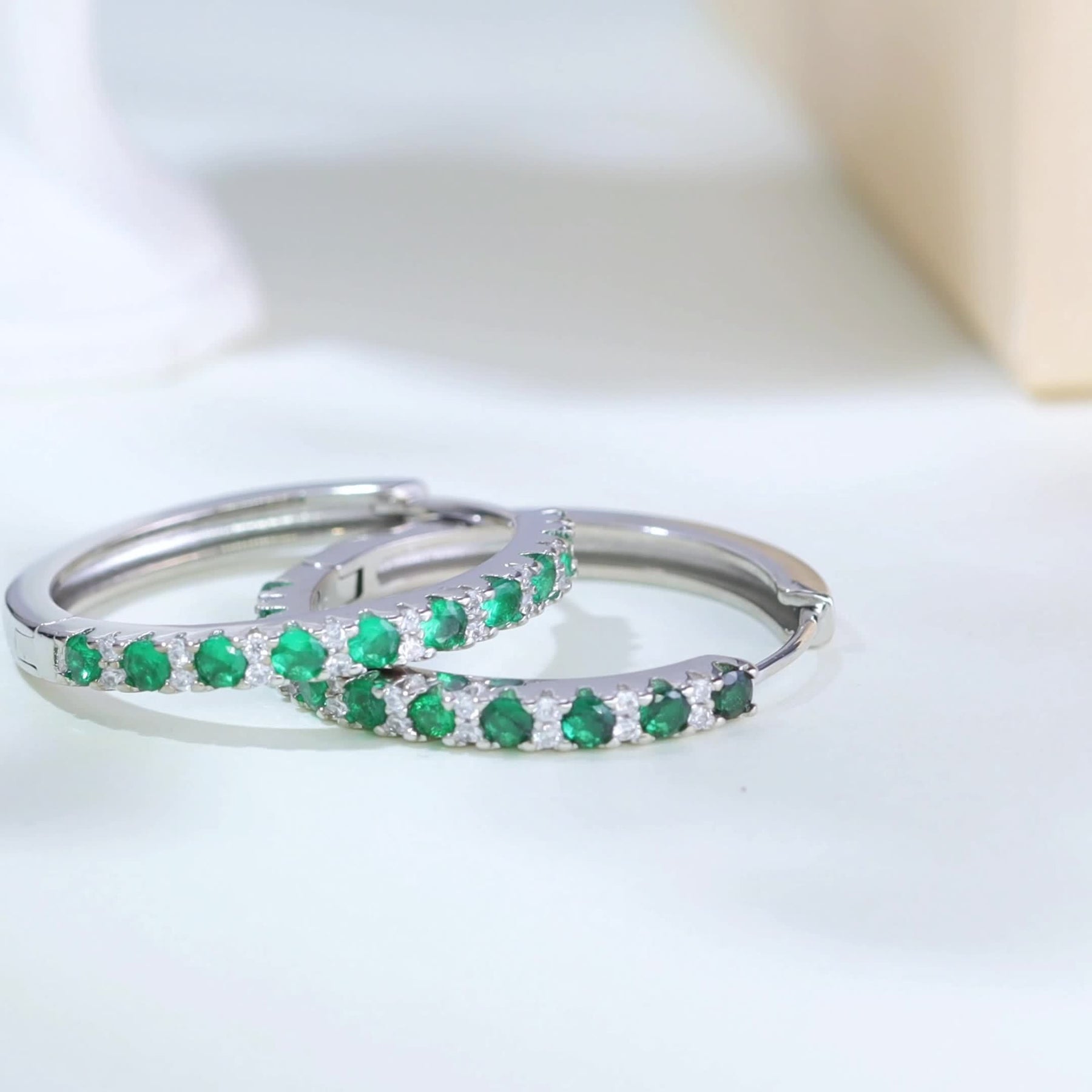 Stay stylish with these allergy-proof hoop earrings crafted from sterling silver. The vibrant green color adds a pop of color to any outfit.