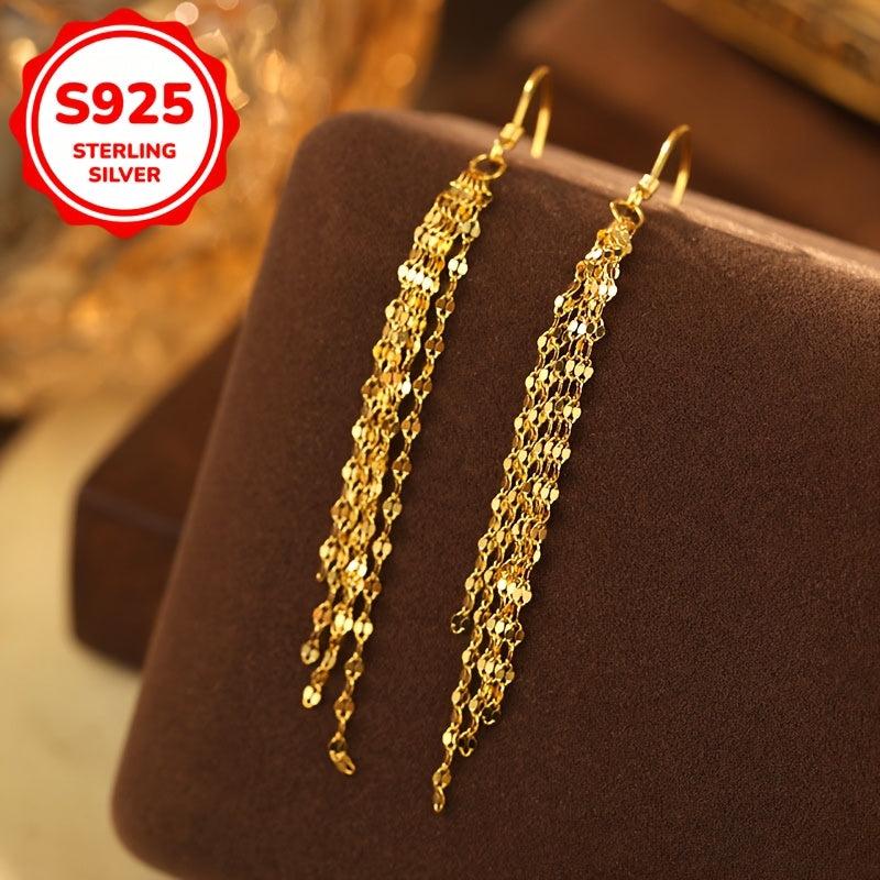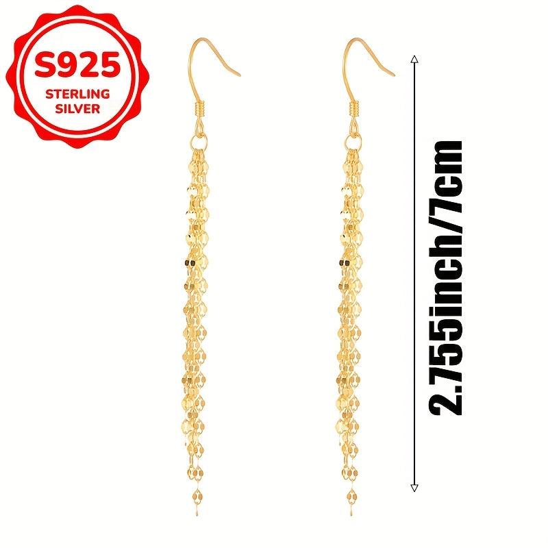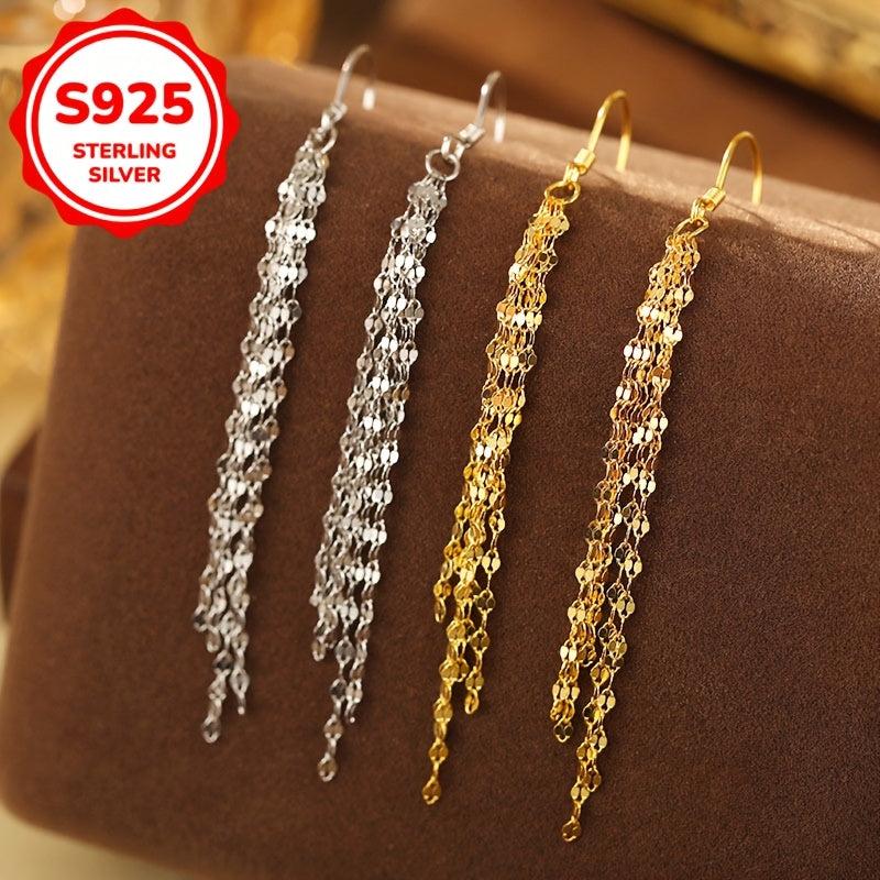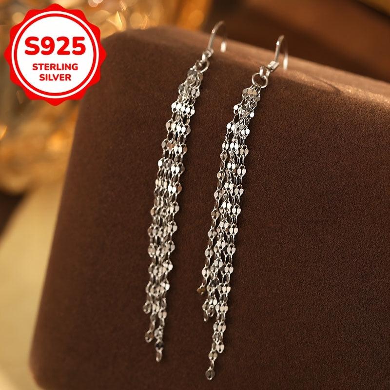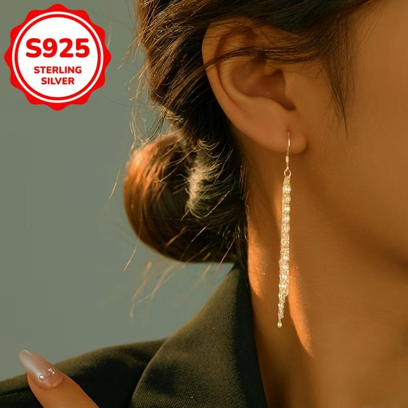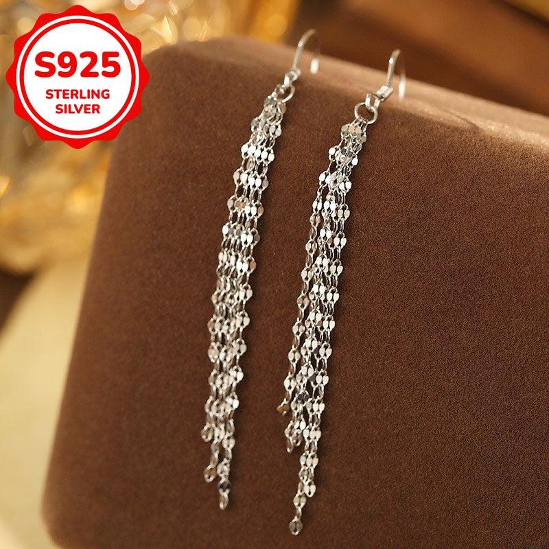 Stylish and minimalist S925 sterling silver earrings with lip chain tassels. Perfect for parties, Valentine's Day, or as a gift for Mother's Day.