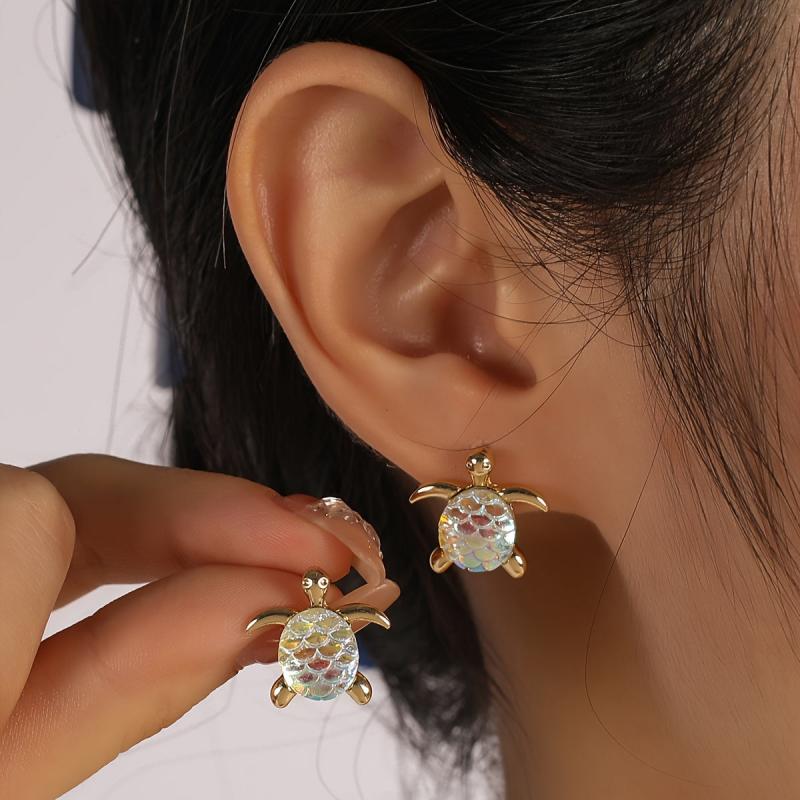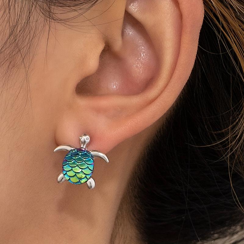Add a touch of the ocean to your outfit with these adorable turtle stud earrings. These cute earrings are perfect for women who love sea life-inspired accessories.