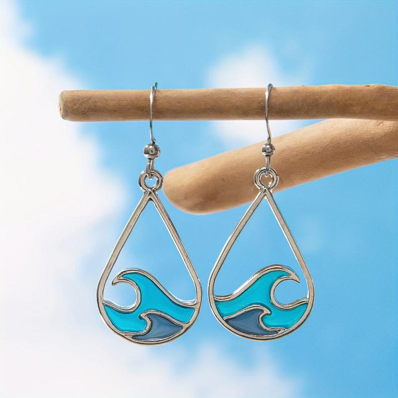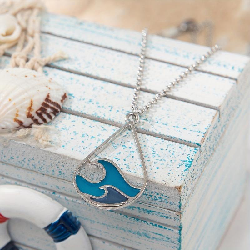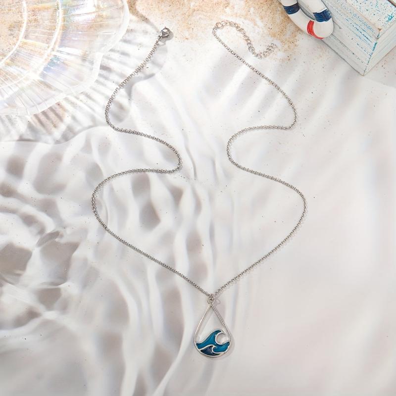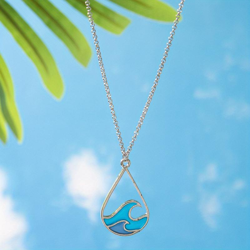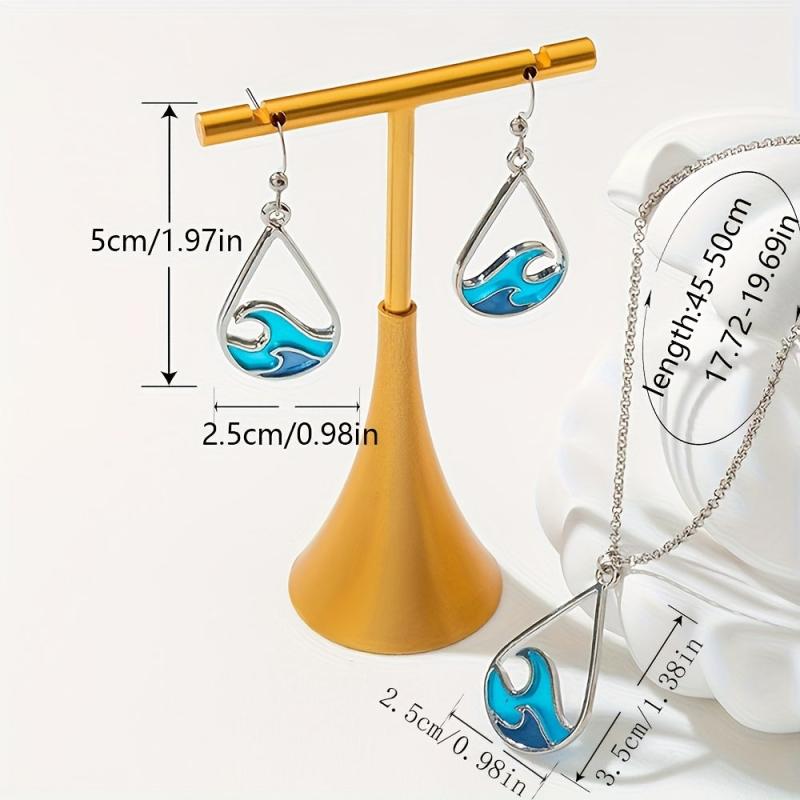 Embrace the vacation vibe with this sea-inspired wave water drop shaped necklace and wavy earrings set.