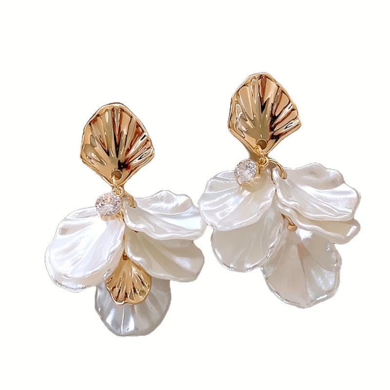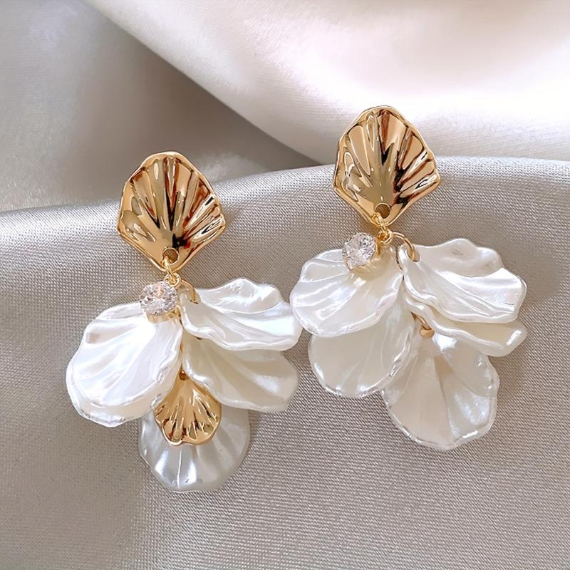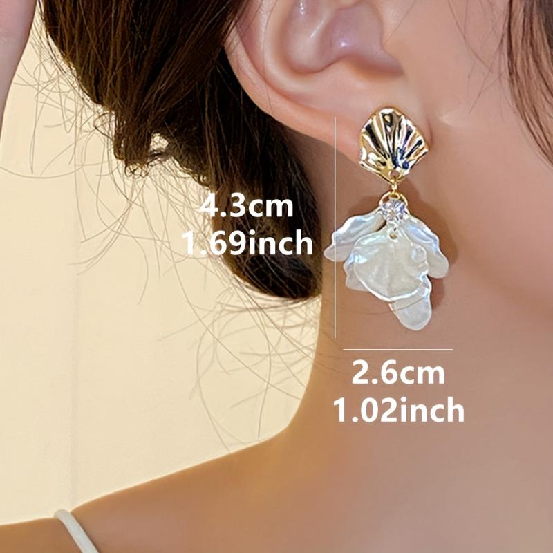 These delicate zinc alloy earrings feature elegant shell leaf design with rhinestones. Suitable for daily wear and special occasions.