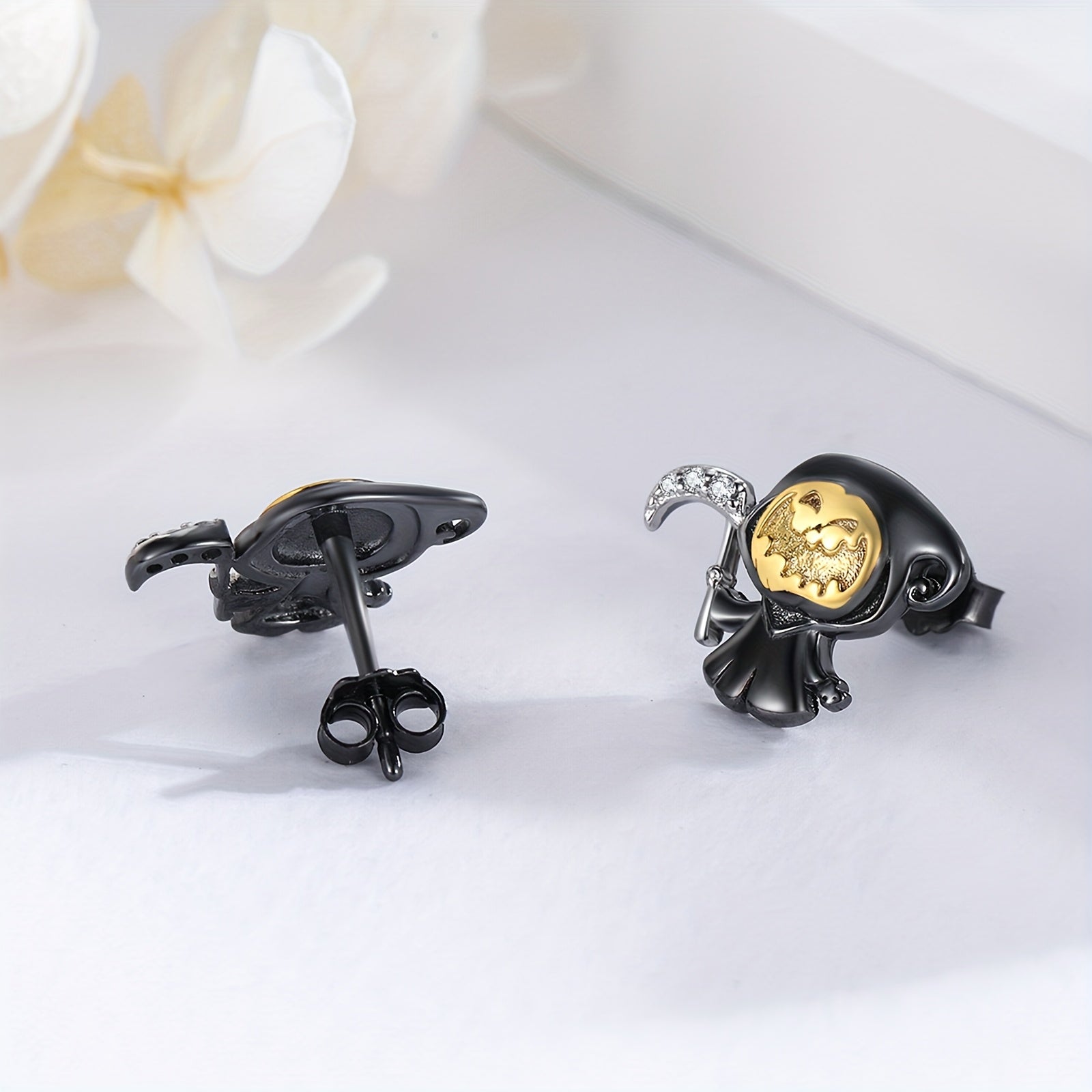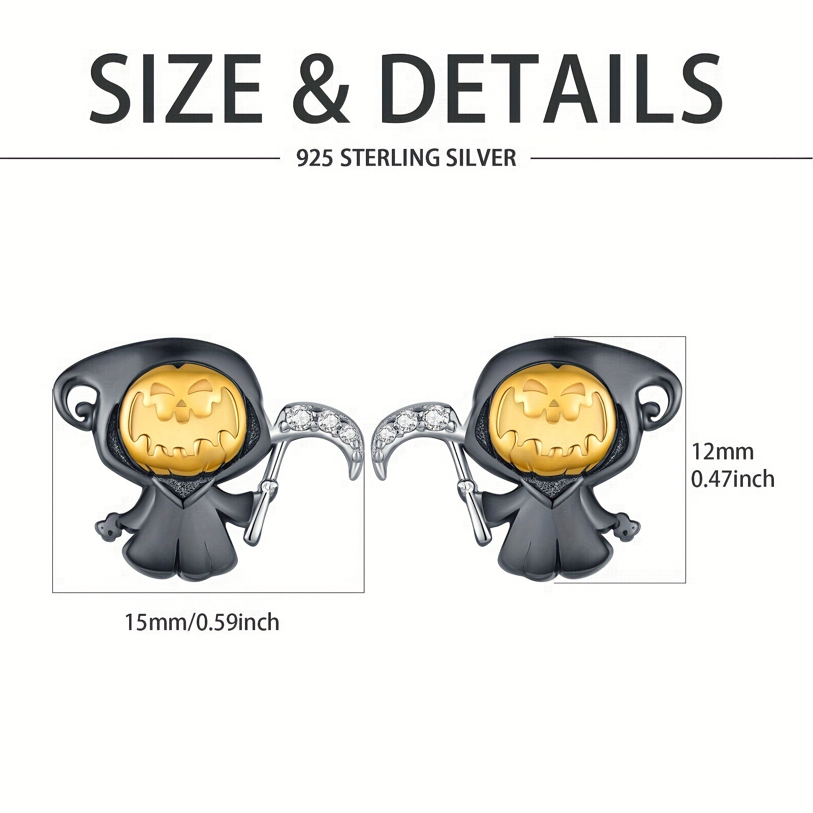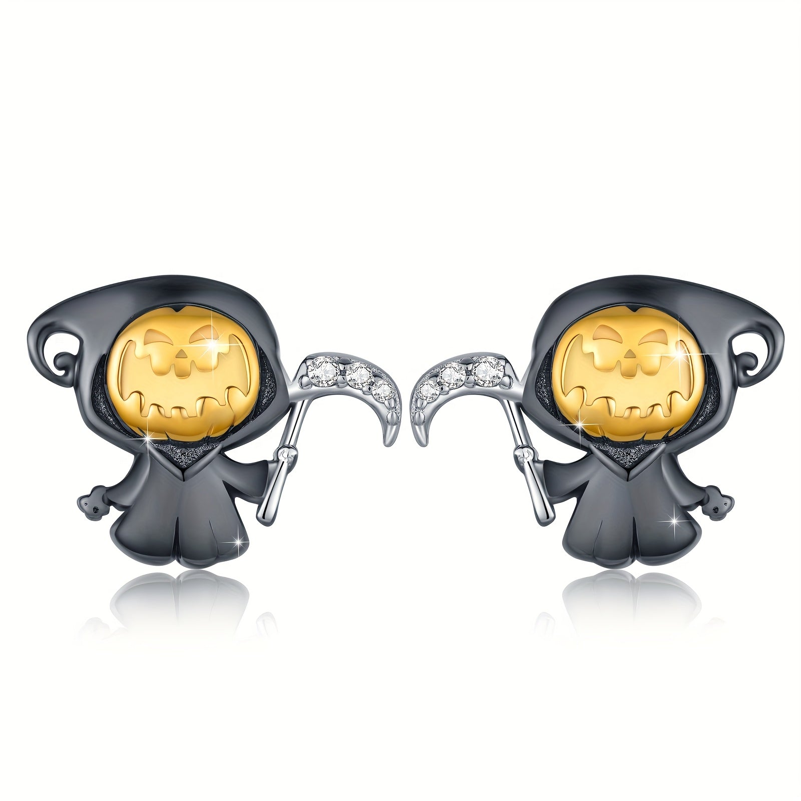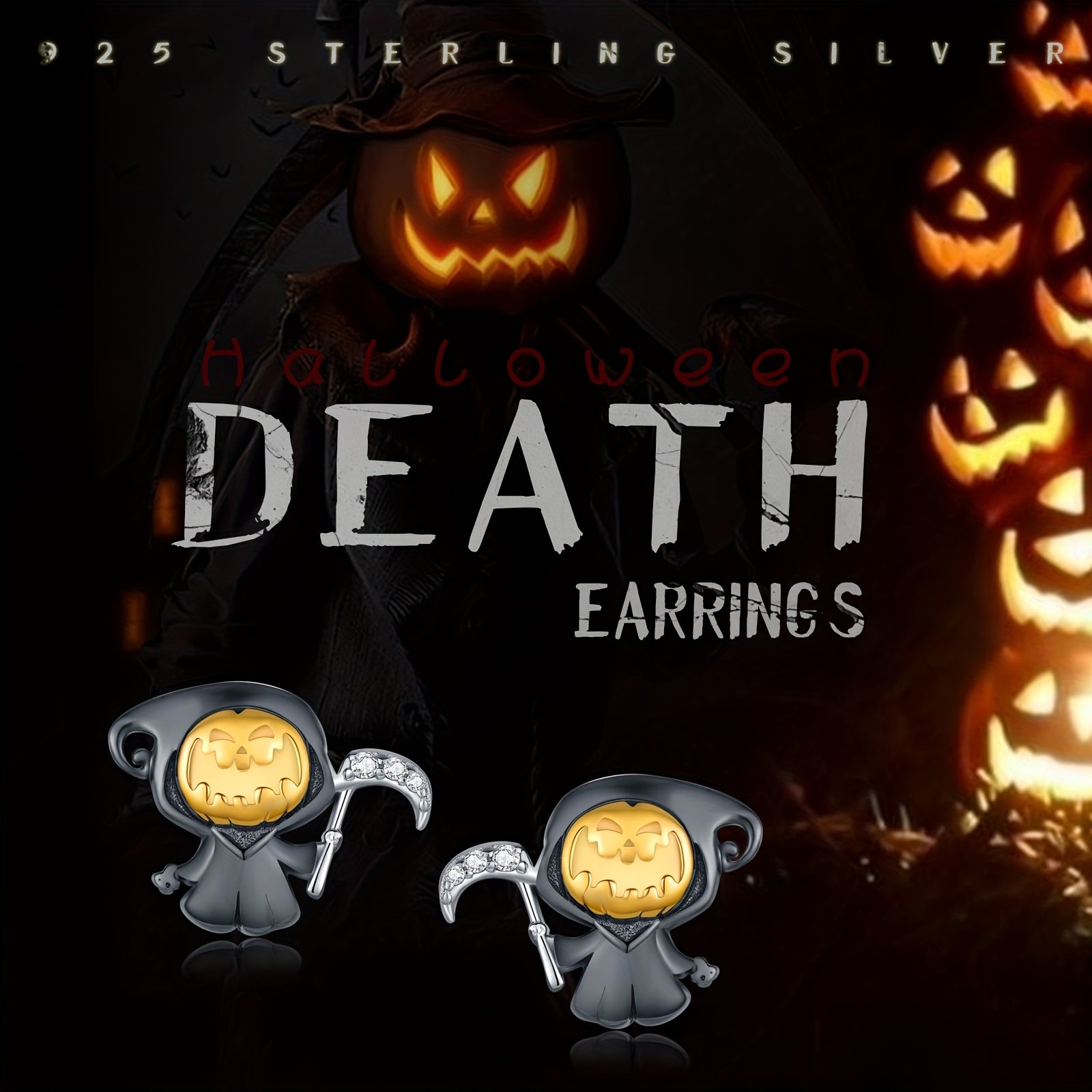 These small pumpkin death earrings are made of 925 sterling silver, perfect for Halloween parties. They are a great gift for anyone who loves spooky jewelry.