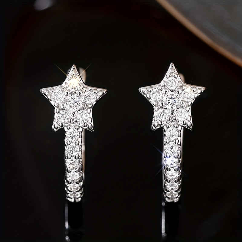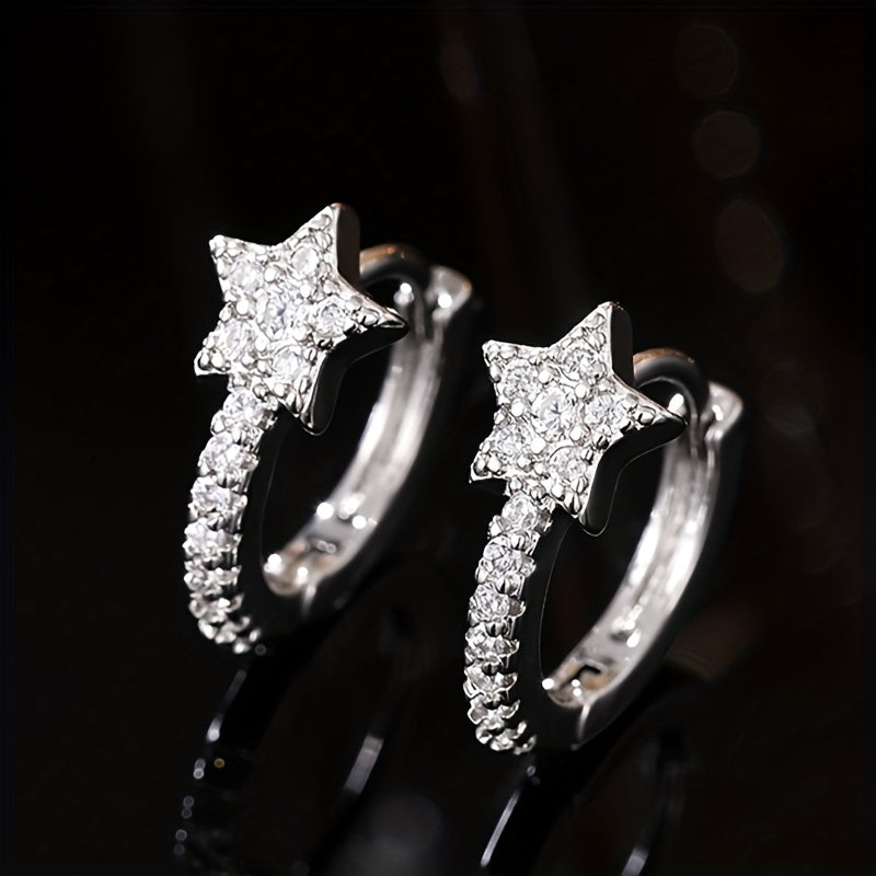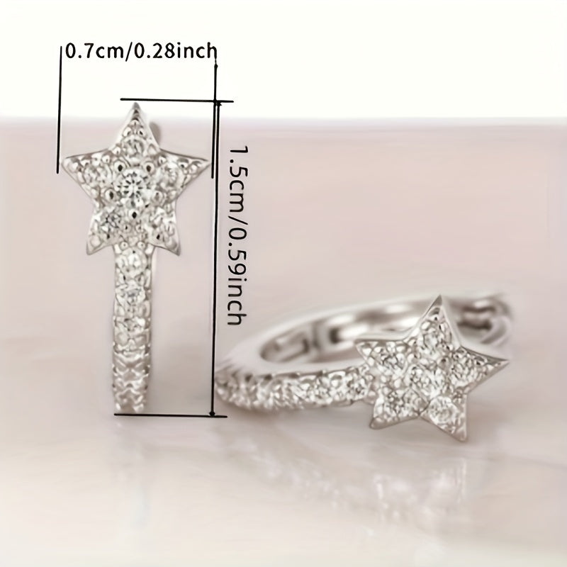 Elevate your style with these stunning hoop earrings featuring sparkling star-shaped zirconia stones. The celestial design adds a touch of elegance and charm to any outfit.