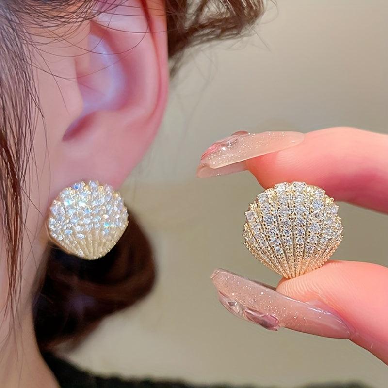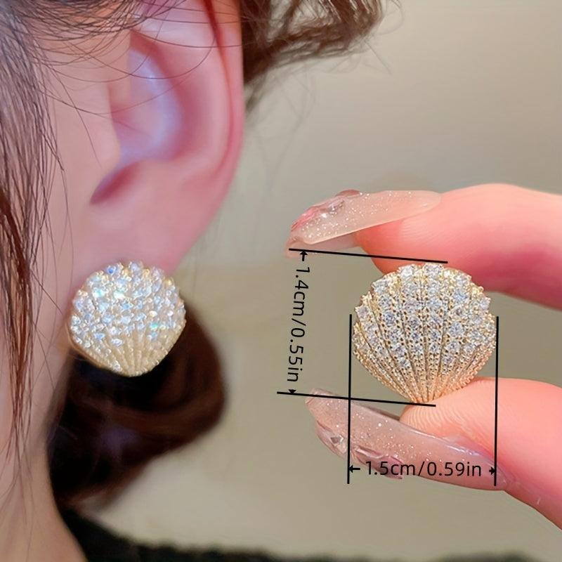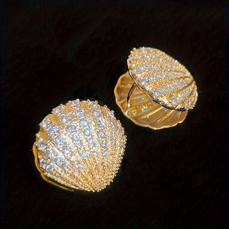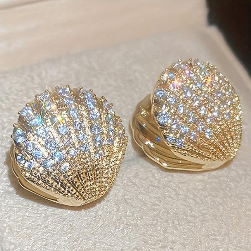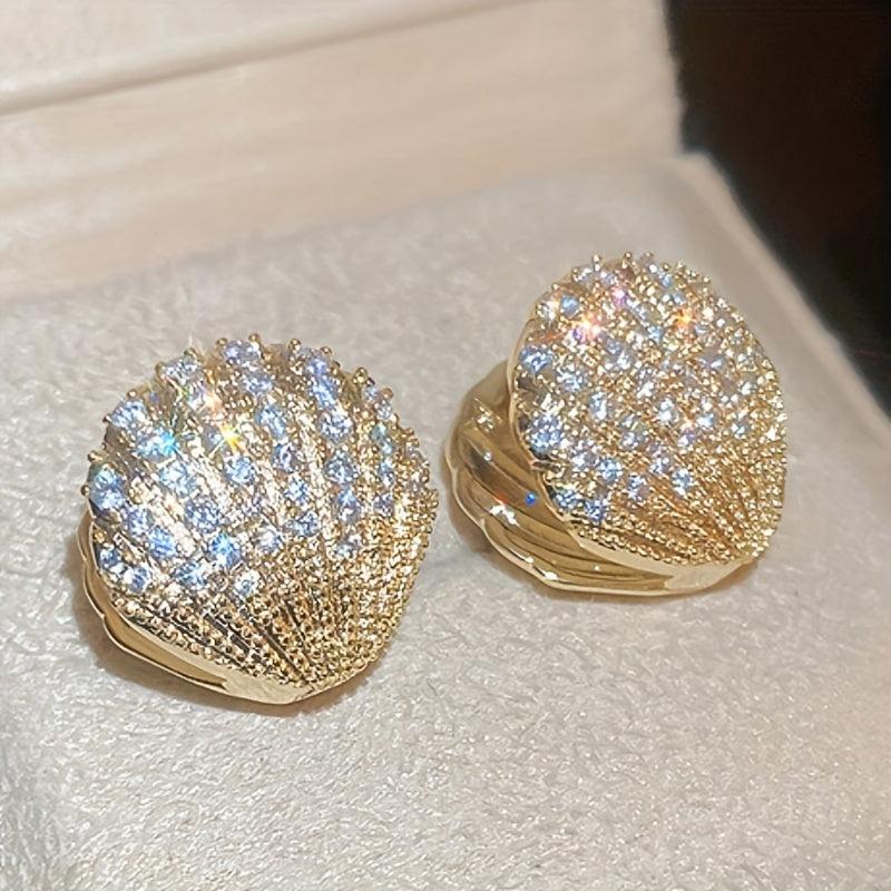 Elevate your style with these inlaid sparkling zirconia hoop earrings in a creative shell shape. Perfect for parties or everyday wear.
