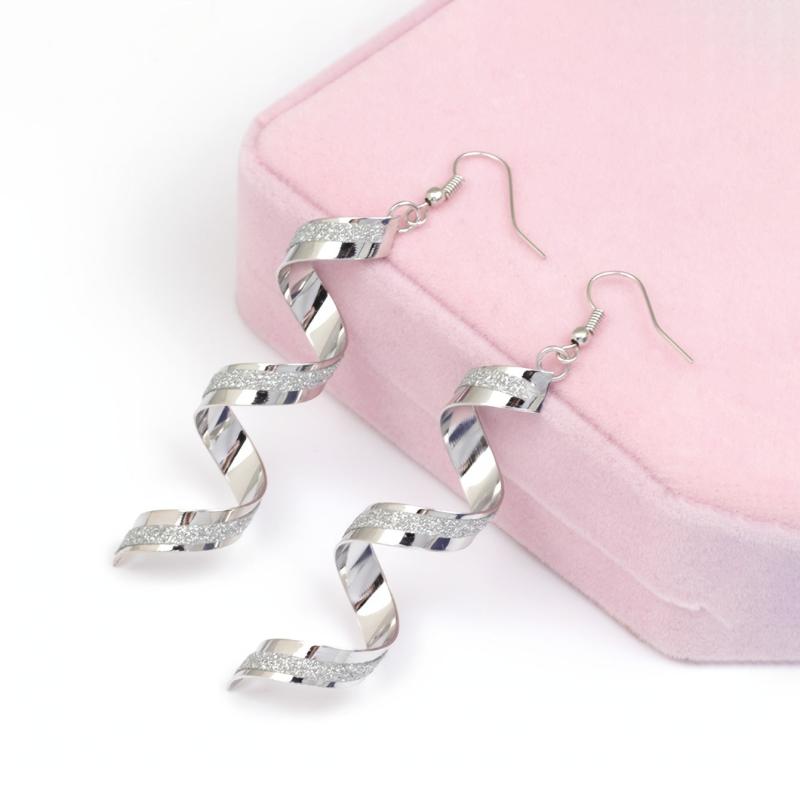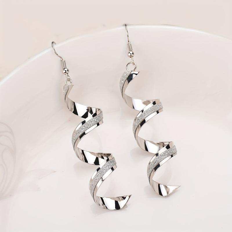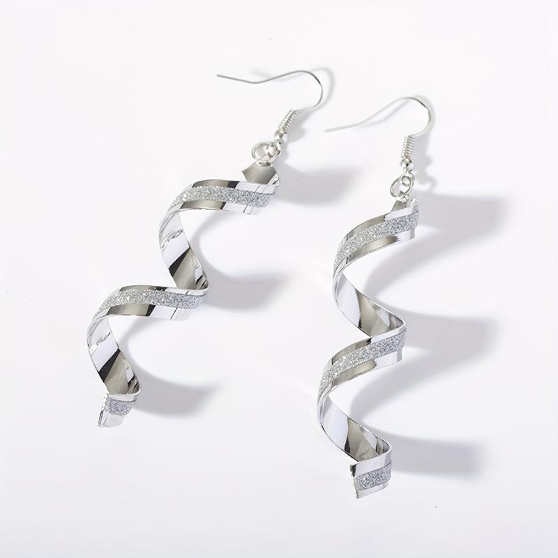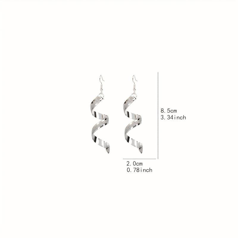 Elegant and stylish spiral wave drop earrings in silver tone, perfect for weddings and everyday wear. These vintage earrings are made from alloy and have a long curved design.