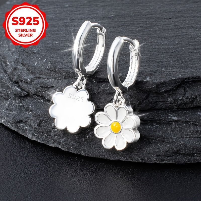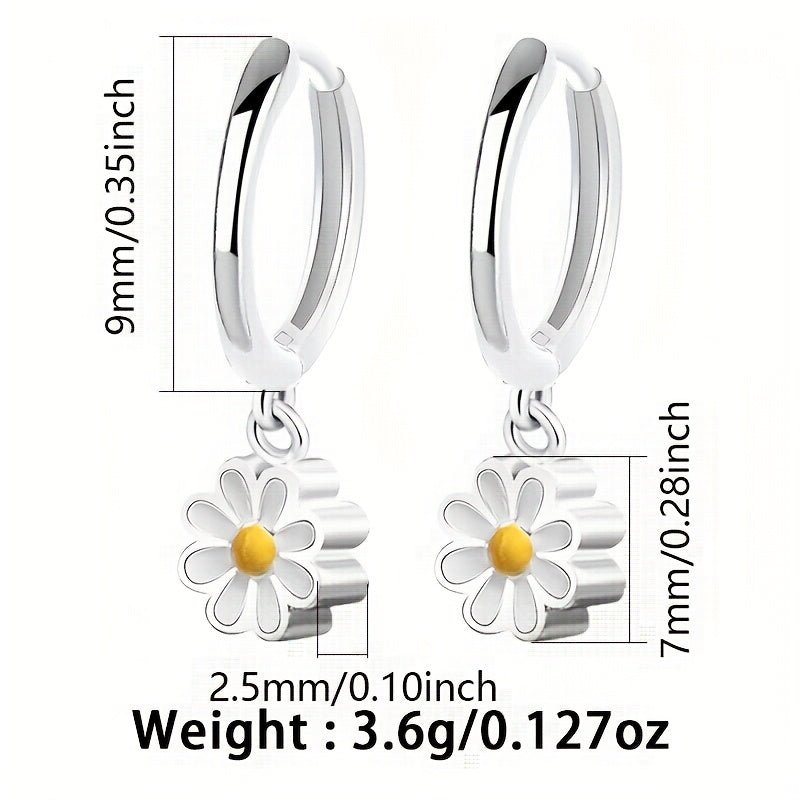 These exquisite dangle earrings feature a spring and summer theme with delicate daisy design. Made of 925 silver, they are lightweight and hypoallergenic. Perfect as a Valentine's or Mother's Day gift.