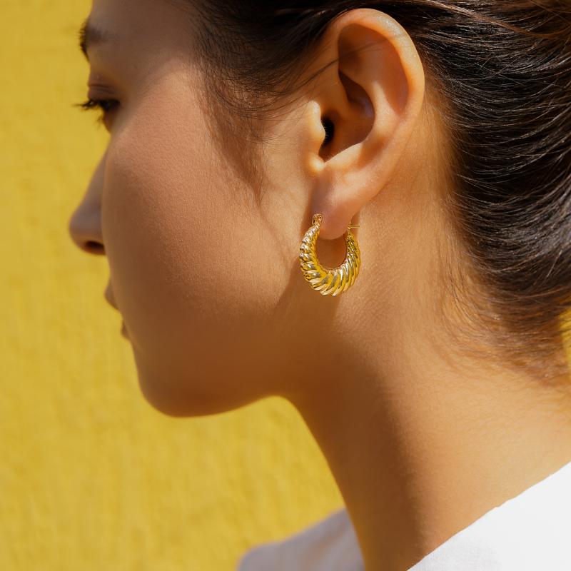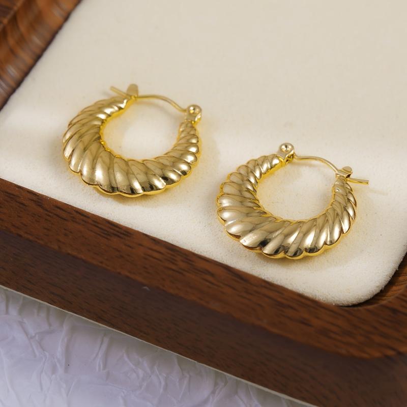 These stainless steel hoop earrings feature a round wave design that is ideal for parties, weddings, and everyday casual attire. A sleek and versatile accessory that makes a great gift for her.