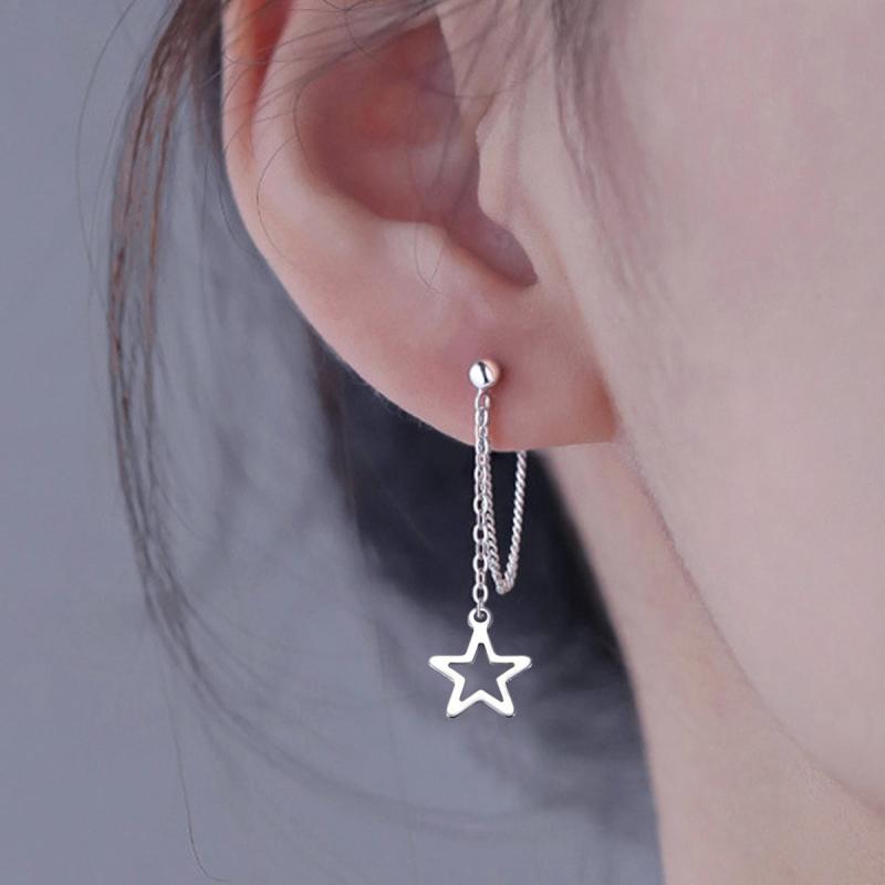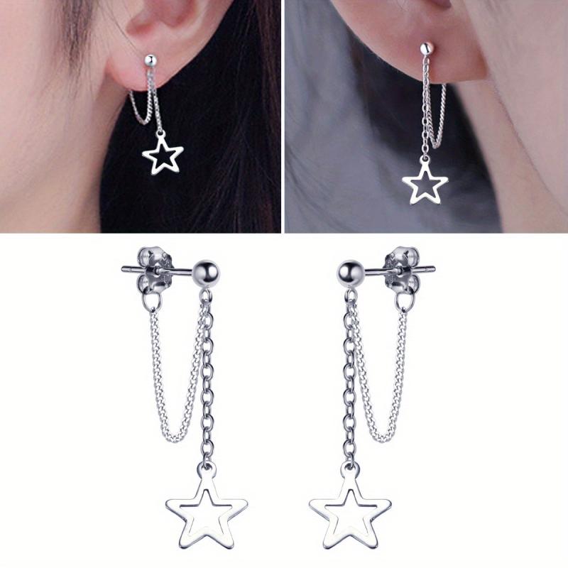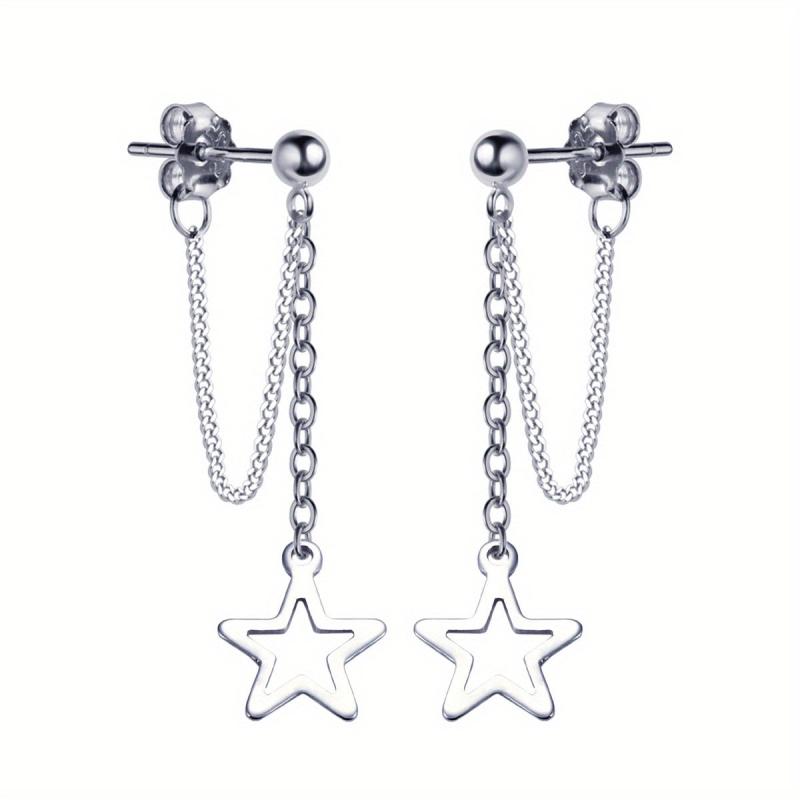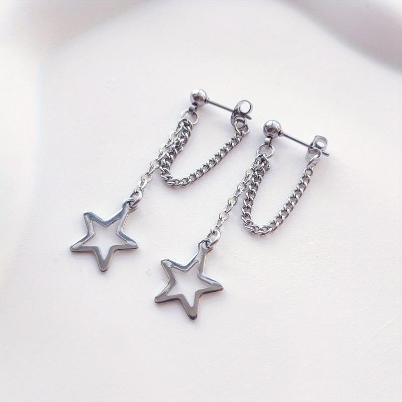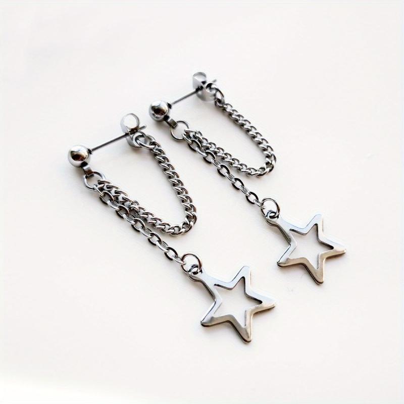 Stainless Steel Star Pendant Earrings with Chain for Christmas & Everyday Wear