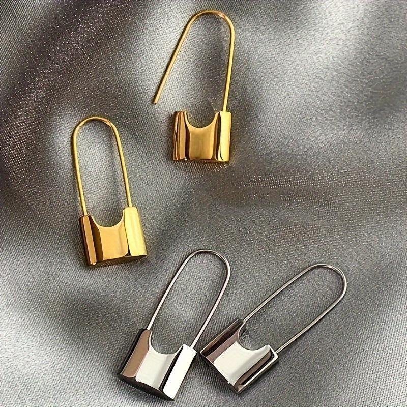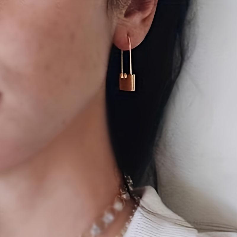 Elevate your party look with this set of stunning earrings. Features a pair of stylish dangling earrings and creative lock-shaped earrings that add a unique touch to your ensemble.