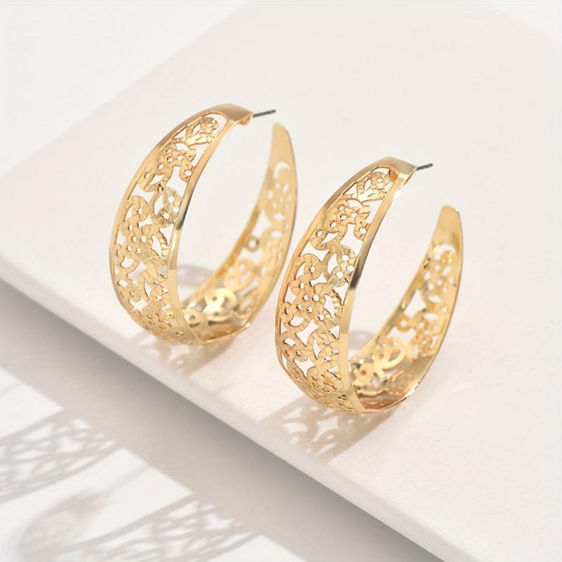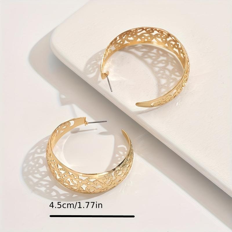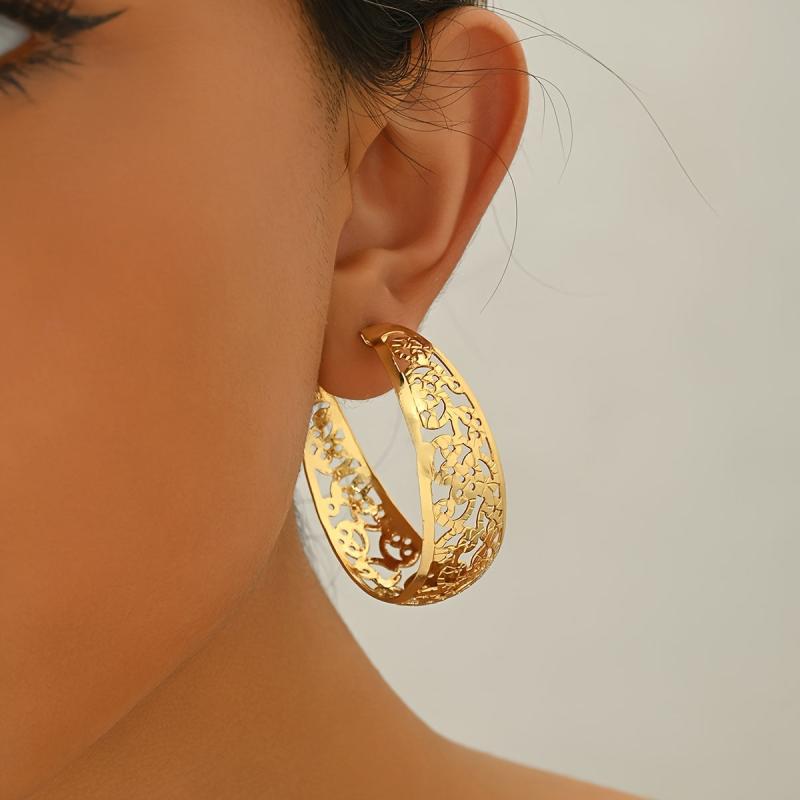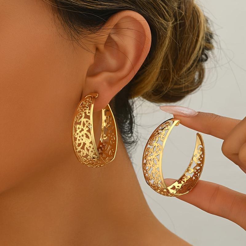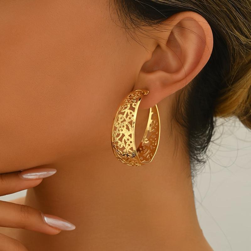 Elevate your look with these unique golden hoop earrings that exude a vibe of elegance and style.