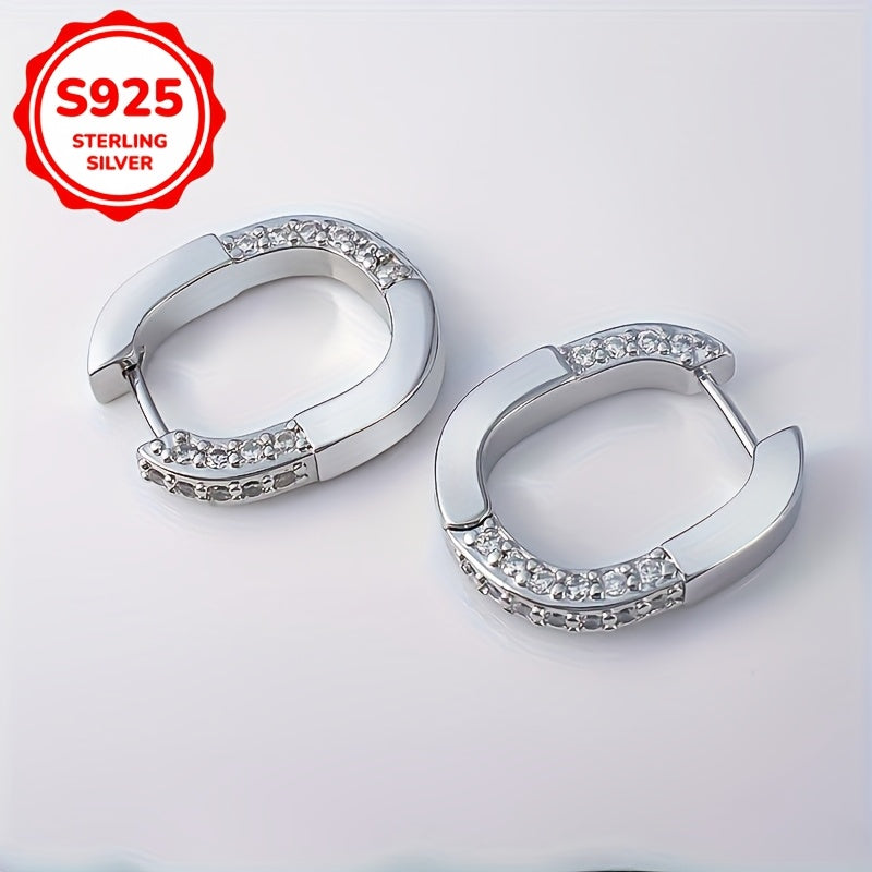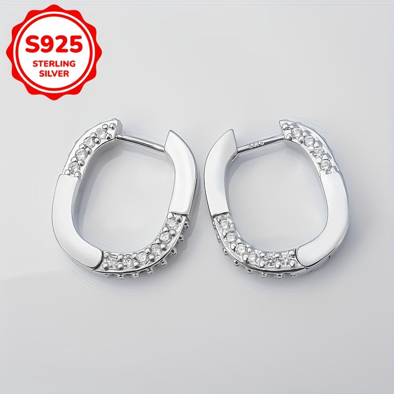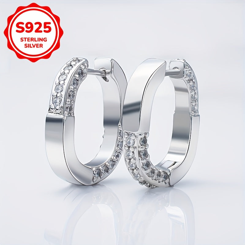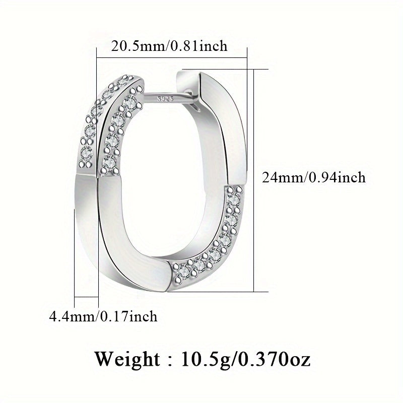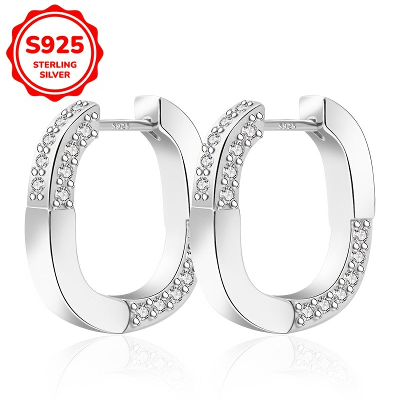 These U shaped earrings are made of 925 sterling silver with sparkling cubic zirconia. They weigh 4.5g and are perfect for daily commute or as a gift for someone special. These earrings are a versatile choice for everyday wear.