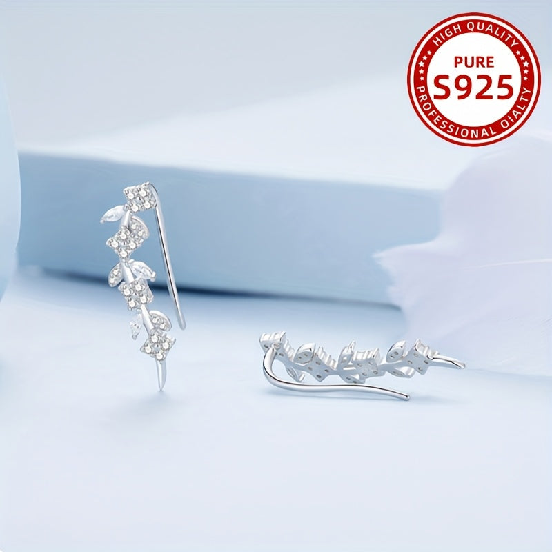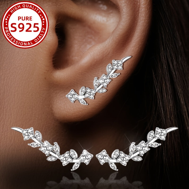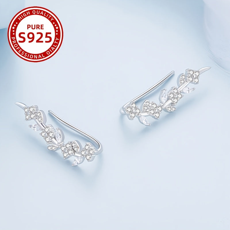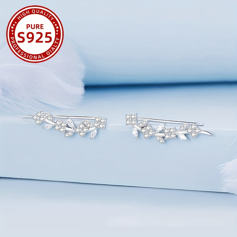 These elegant dangle earrings feature a branch flower design with synthetic zirconia inlaid in 925 silver. Perfect for daily wear.