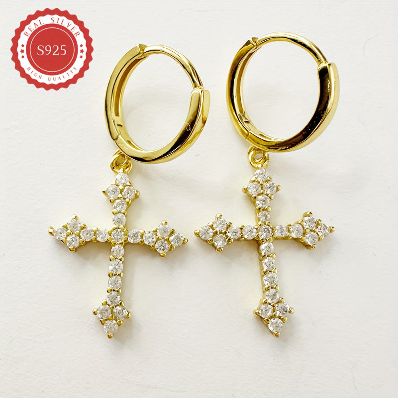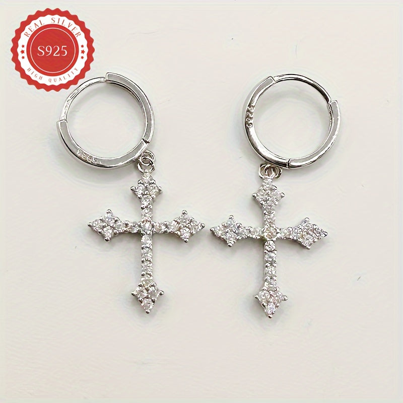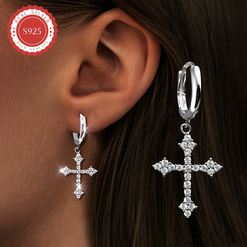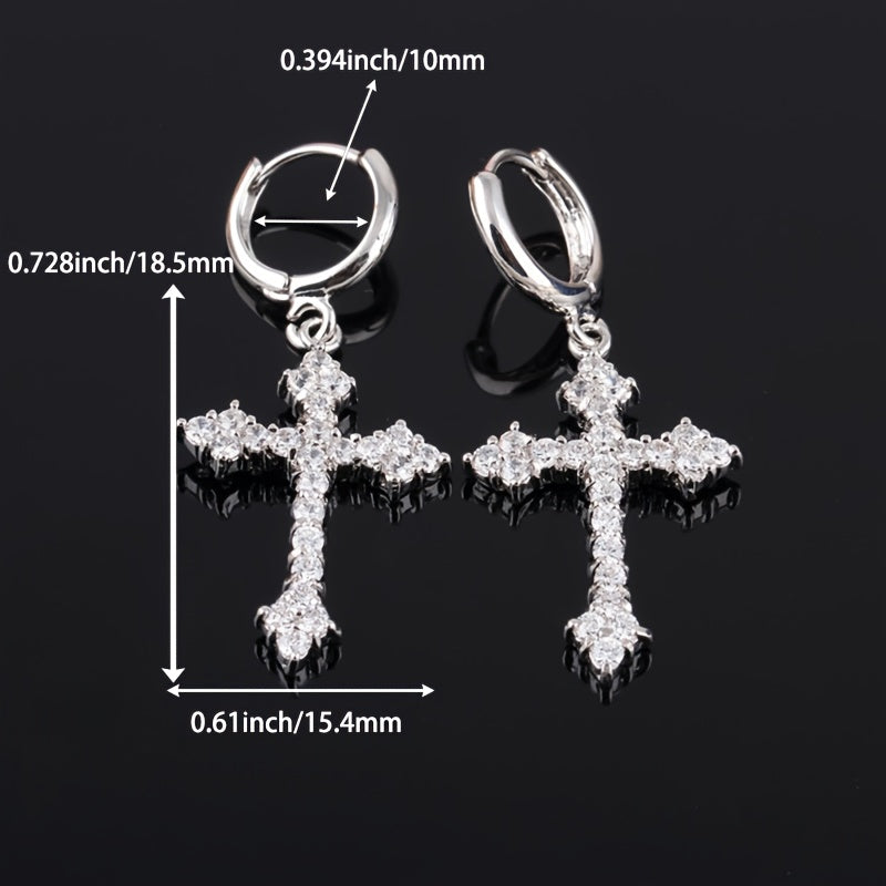 Stylish and unique earrings featuring solid cubic zirconia cross. Perfect for daily wear, parties, music events, weddings, banquets, and holiday gifts.