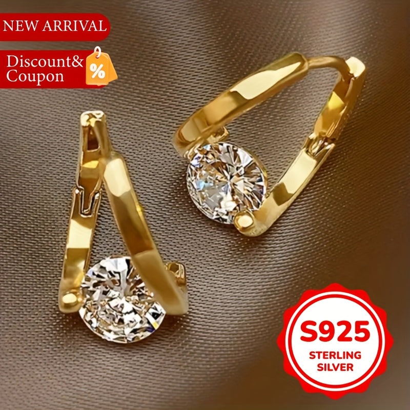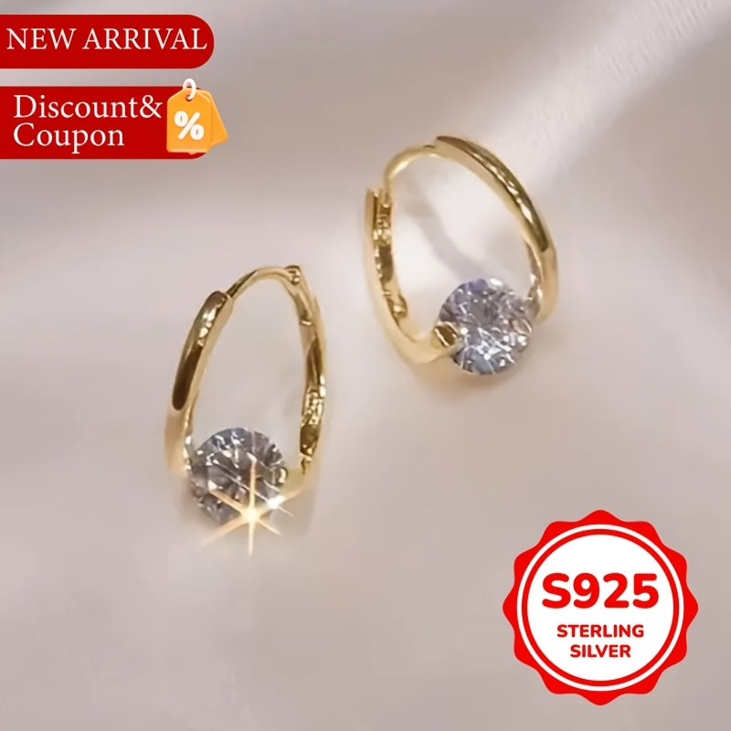 Elegant sterling silver hoop earrings with synthetic zirconia for a luxurious touch.