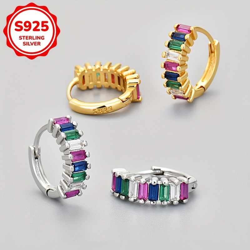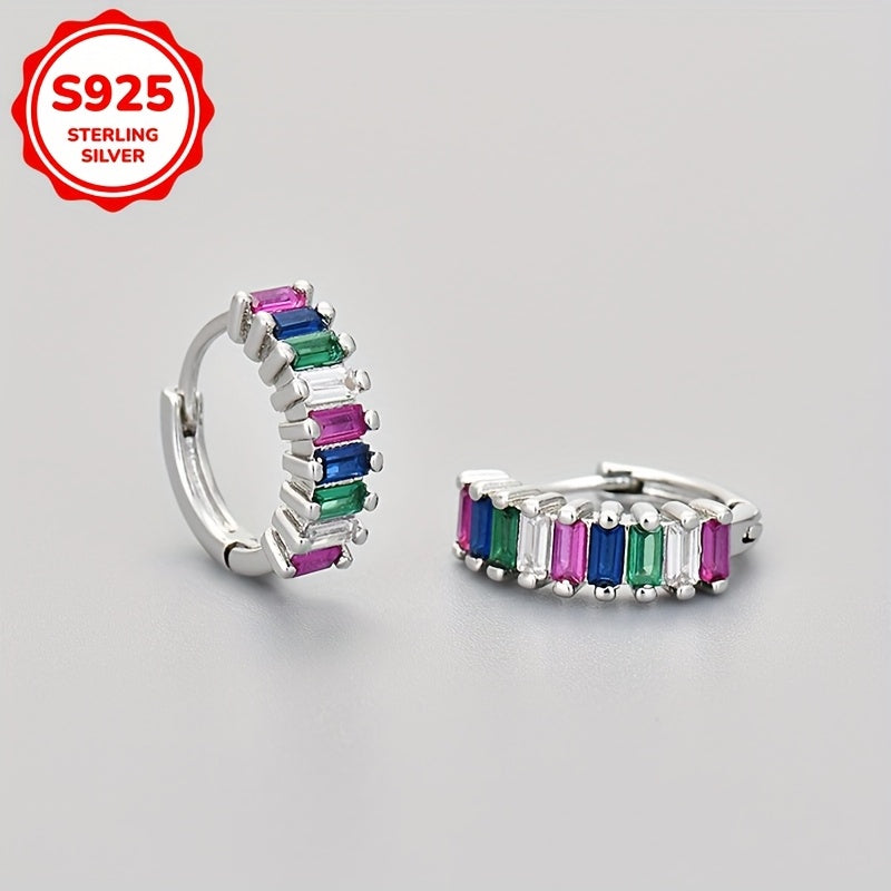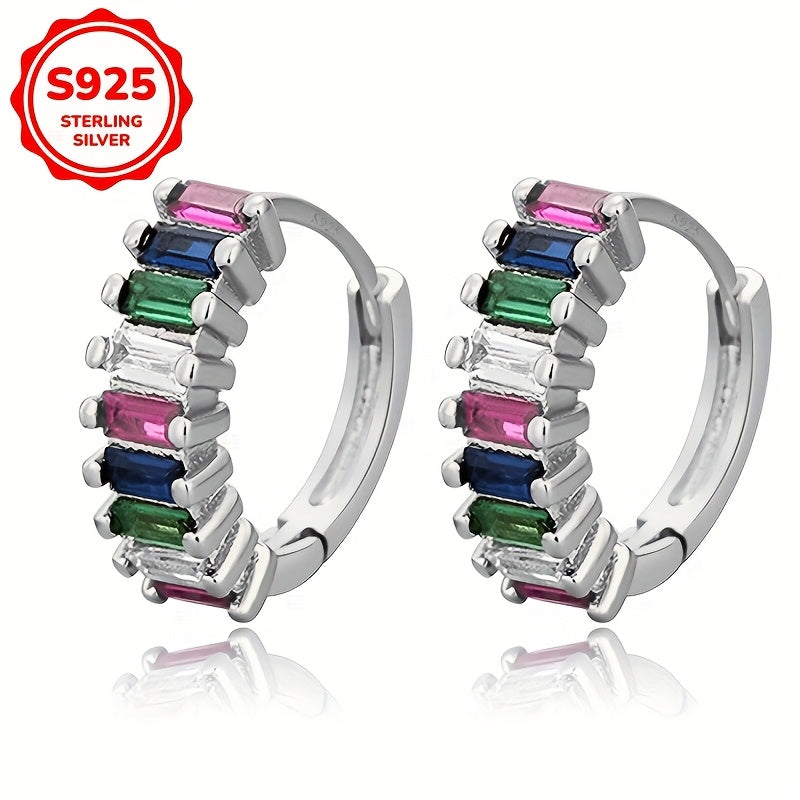 Add a touch of sparkle to your look with these stunning hoop earrings. Made of 925 sterling silver with synthetic zirconia stones, they are lightweight and comfortable for daily wear or special occasions.