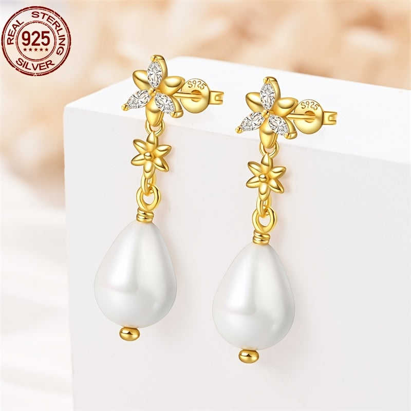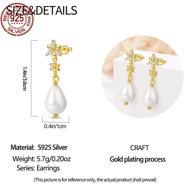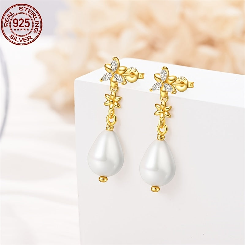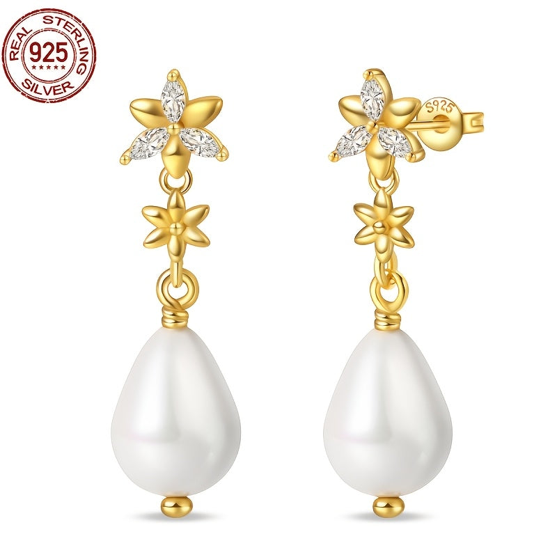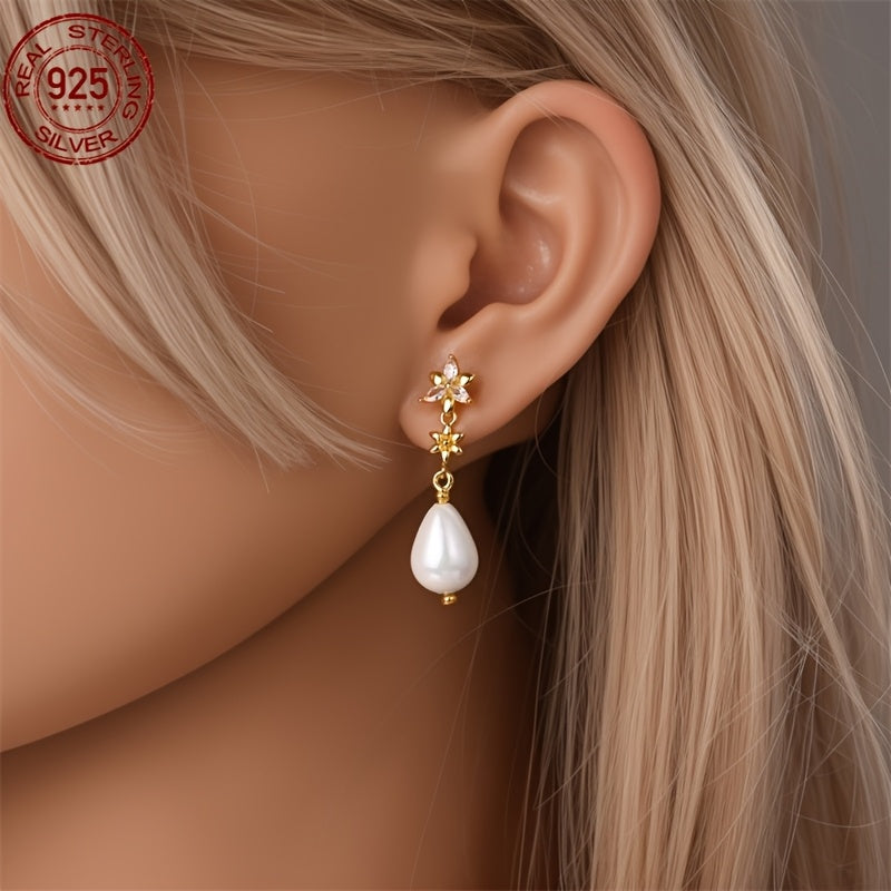 These elegant S925 silvery earrings are perfect for any occasion. The flower design with pearls adds a touch of sophistication to your outfit. Ideal as a holiday or birthday gift.